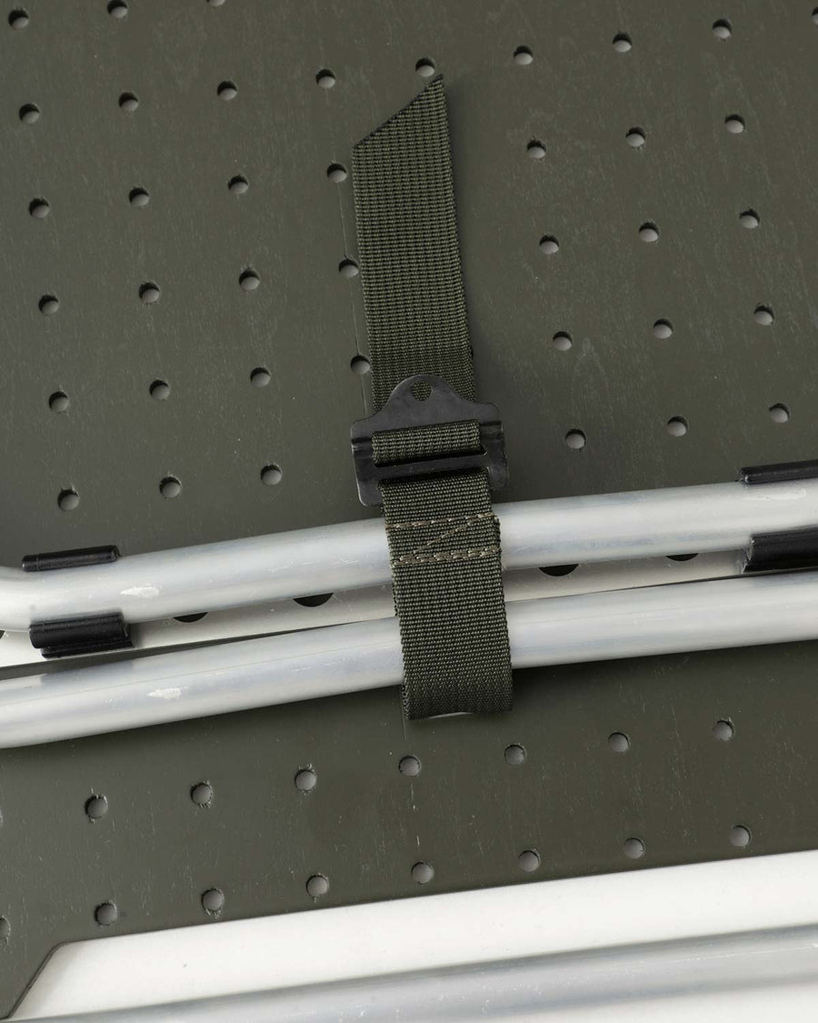 ミリタリー調のオリーブカラーで統一されたパンチングトップの天板には〈MOUNTAIN RESEARCH〉オリジナルキャラクターの小屋鳥をプリントしています。