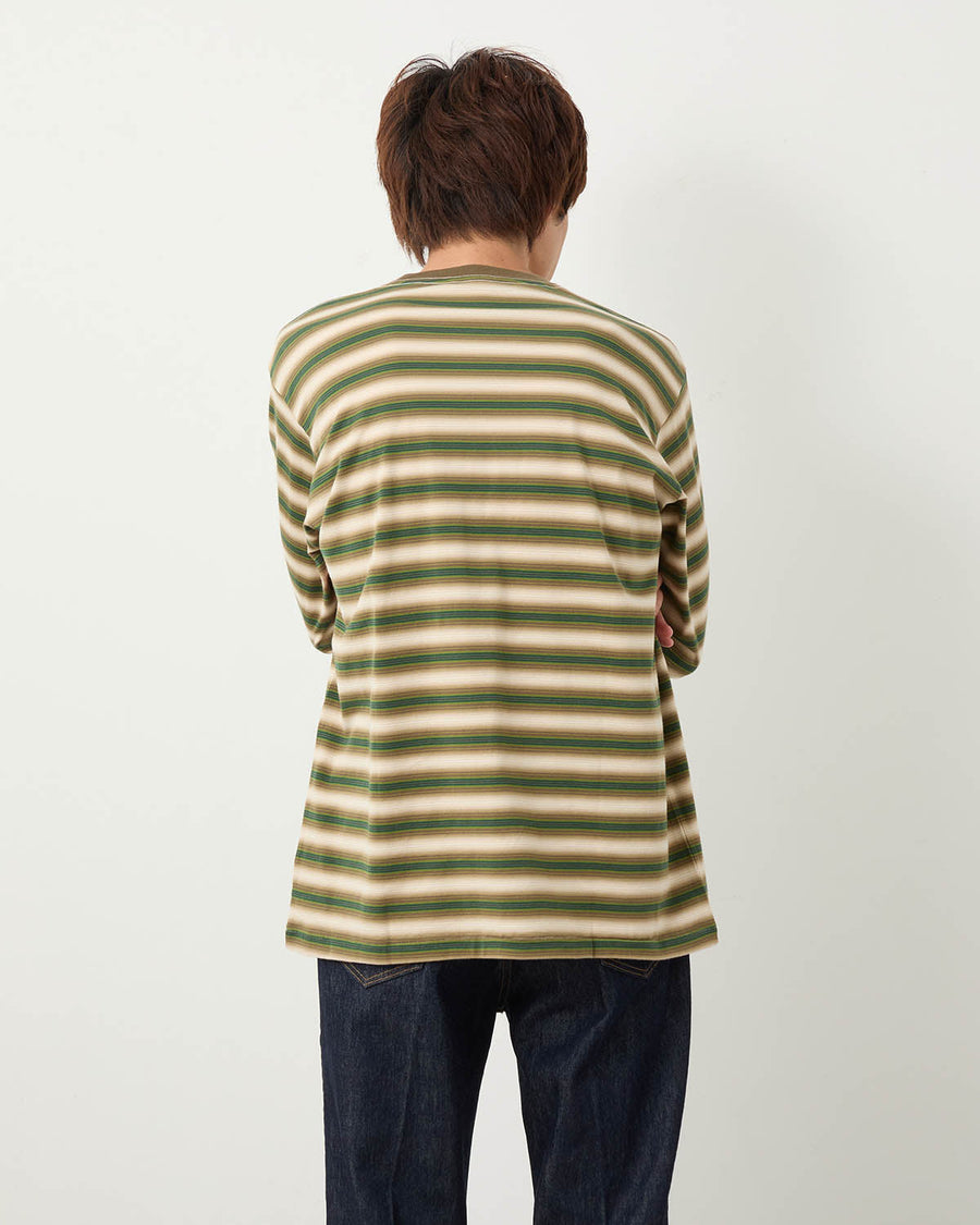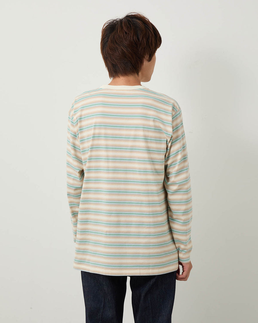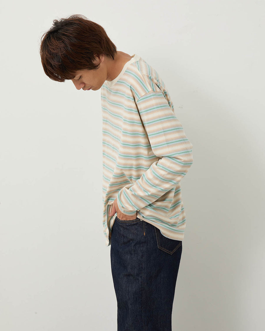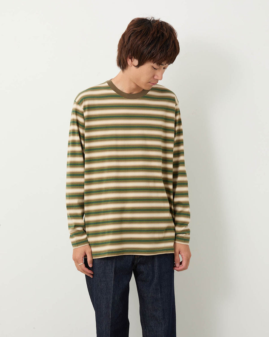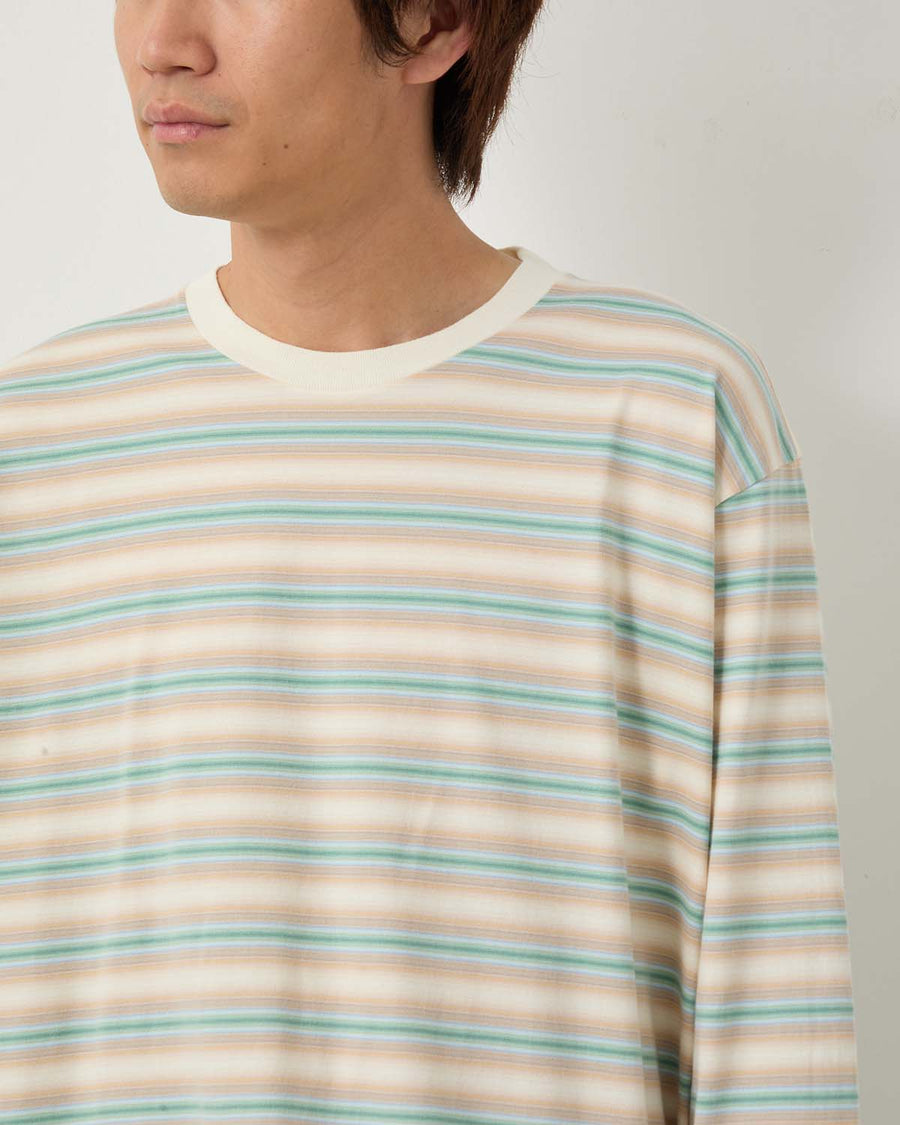 23色の色を用いたグラデーションボーダー天竺素材のロングスリーブTシャツです。
