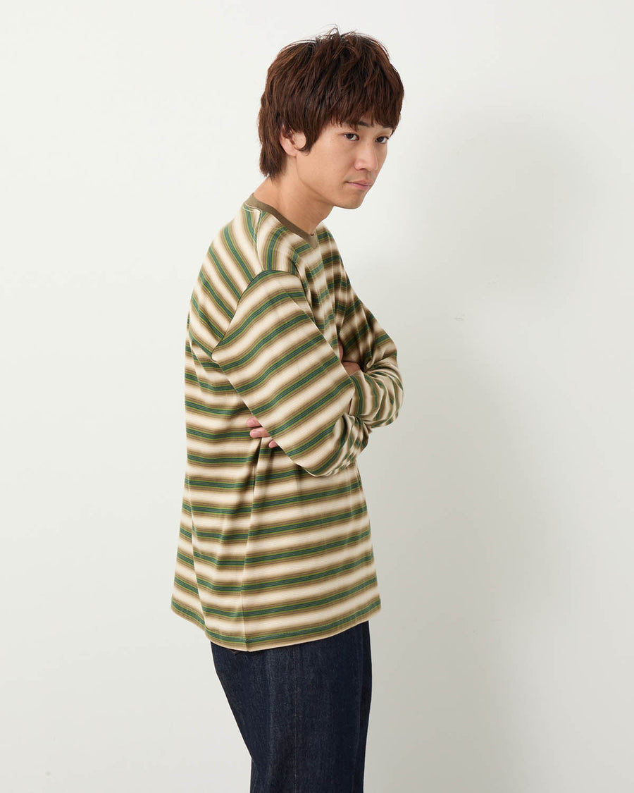 AURALEE GRADIENT STRIPE JERSEY L/S TEE