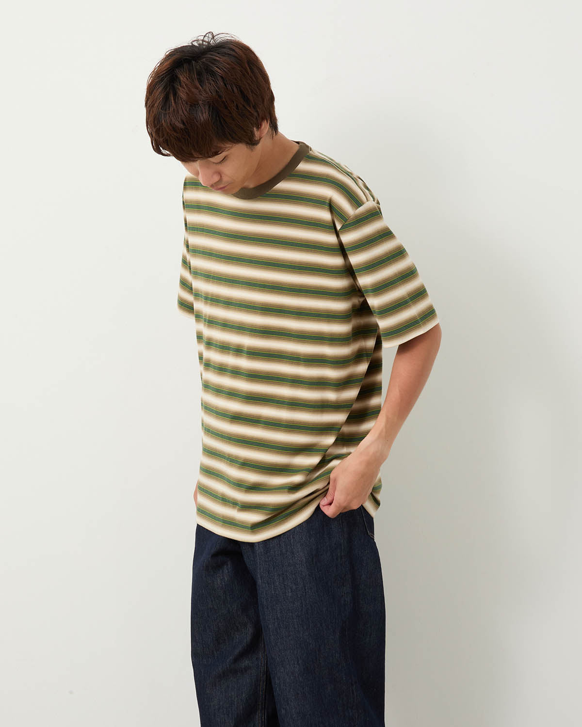 AURALEE GRADIENT STRIPE JERSEY TEE