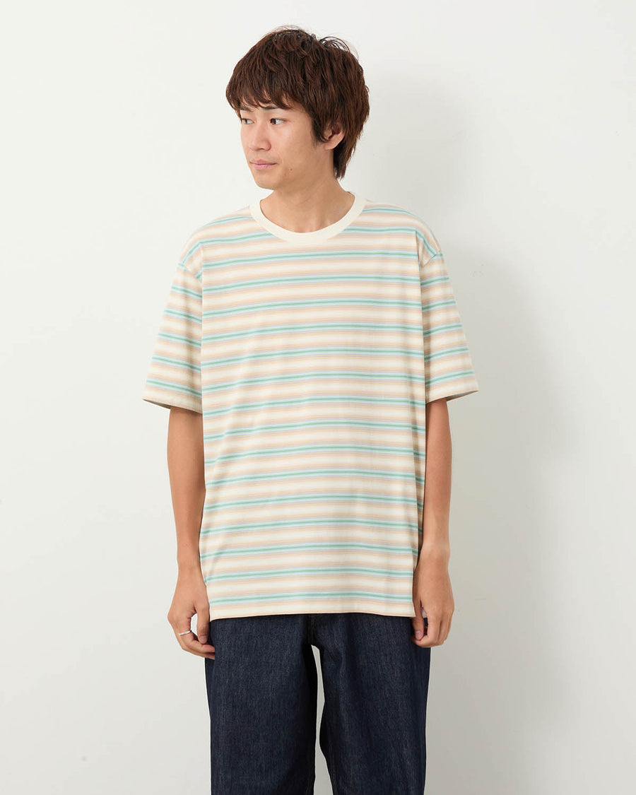 23色の色を用いたグラデーションボーダー天竺素材のTシャツです。