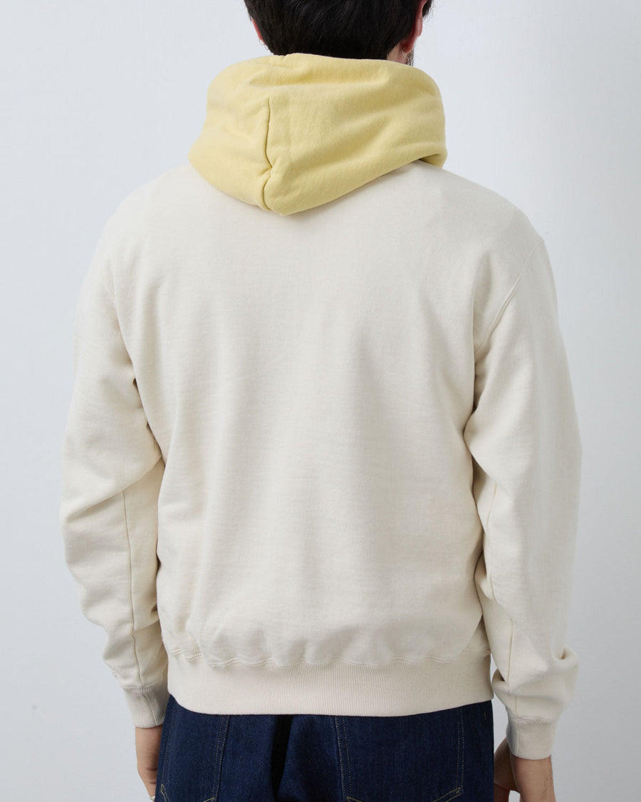 希少な旧式の吊り編み機を使用し、ヴィンテージライクな粗野感のあるコットンを、時間をかけてゆっくりと編み上げた、プルオーバーフーディです。