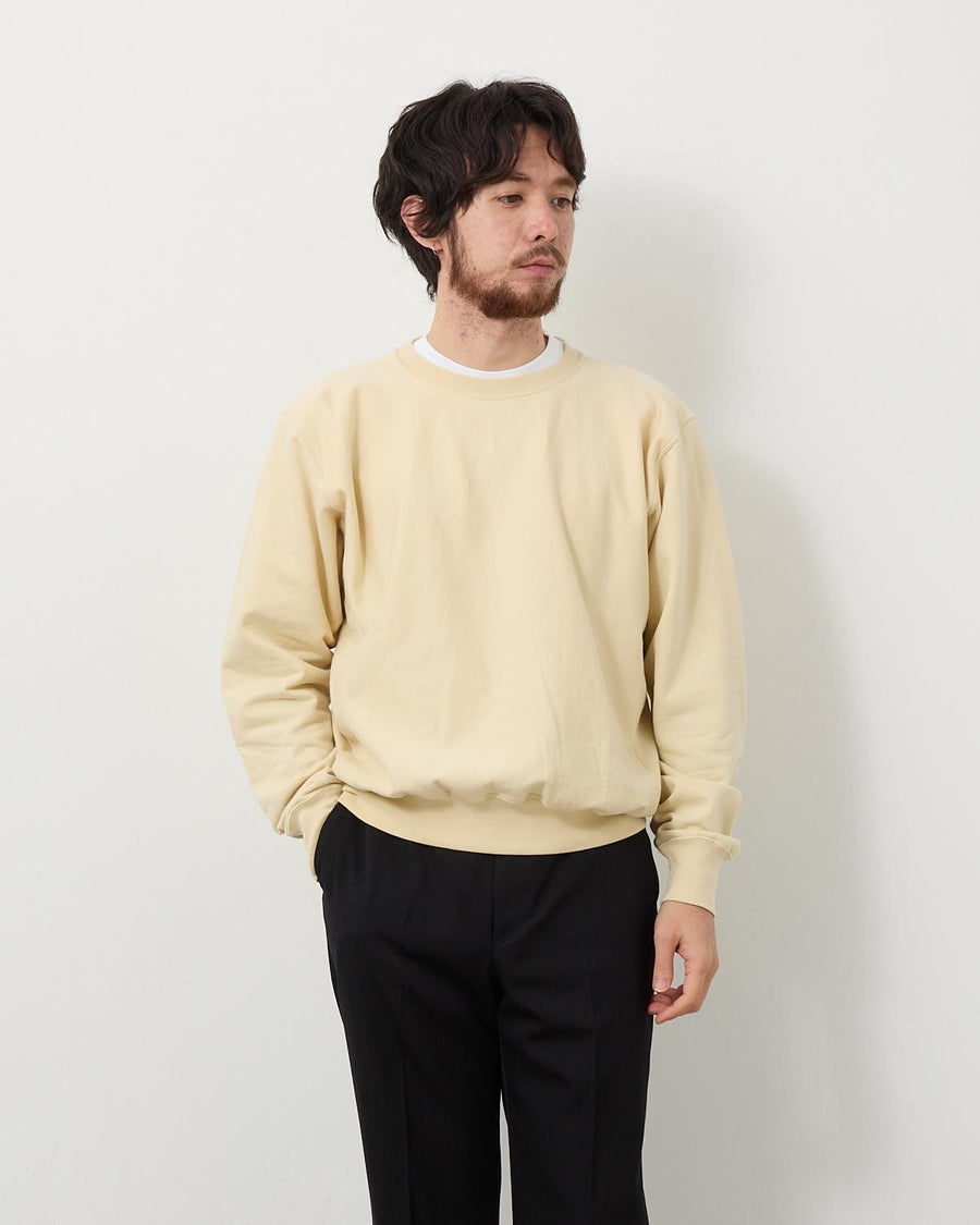 超長綿の極細番手糸を希少な編み機で、超ハイゲージに編み立てたクルーネックスウェットです。