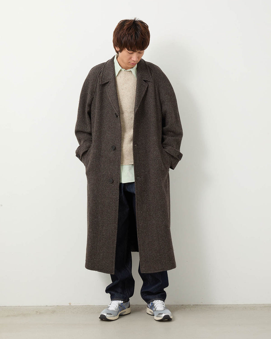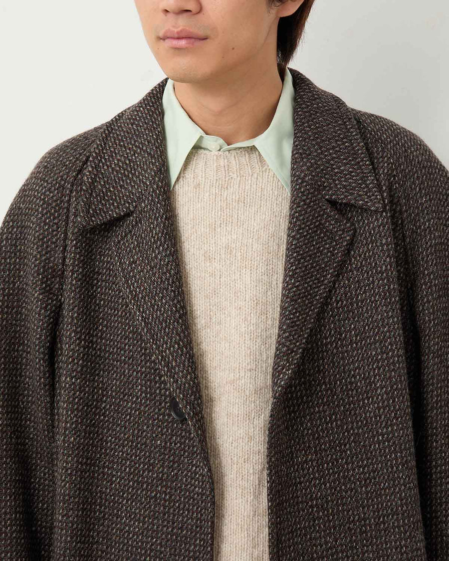 アルパカ混ならではの軽さと保温性が見事に融合し、クラシックな素材感を保ちながらも、暖かく軽やかな着心地を実現しています。