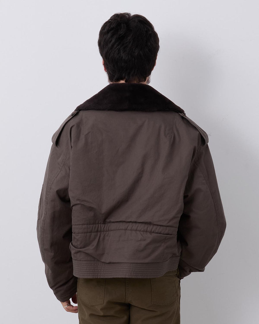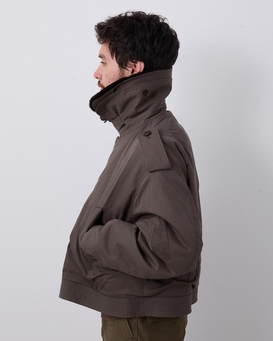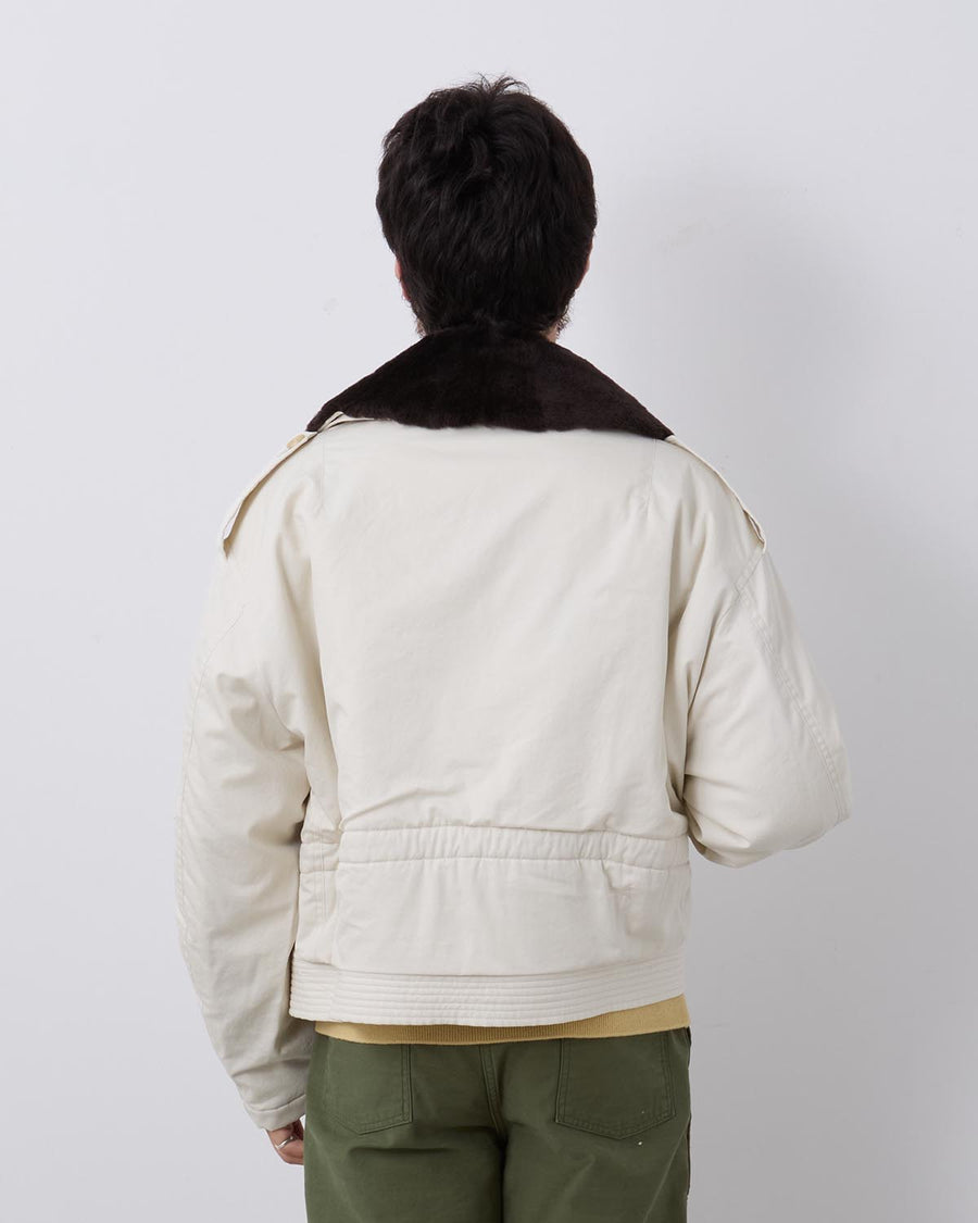 エジプト産フィンクスコットンを使用し、3本撚りで織り上げたギャバジン素材のフライトブルゾンです。