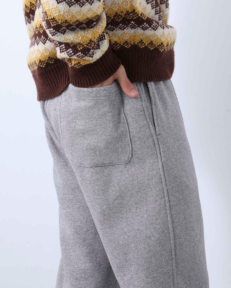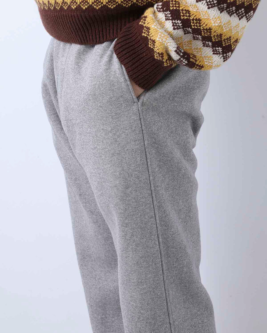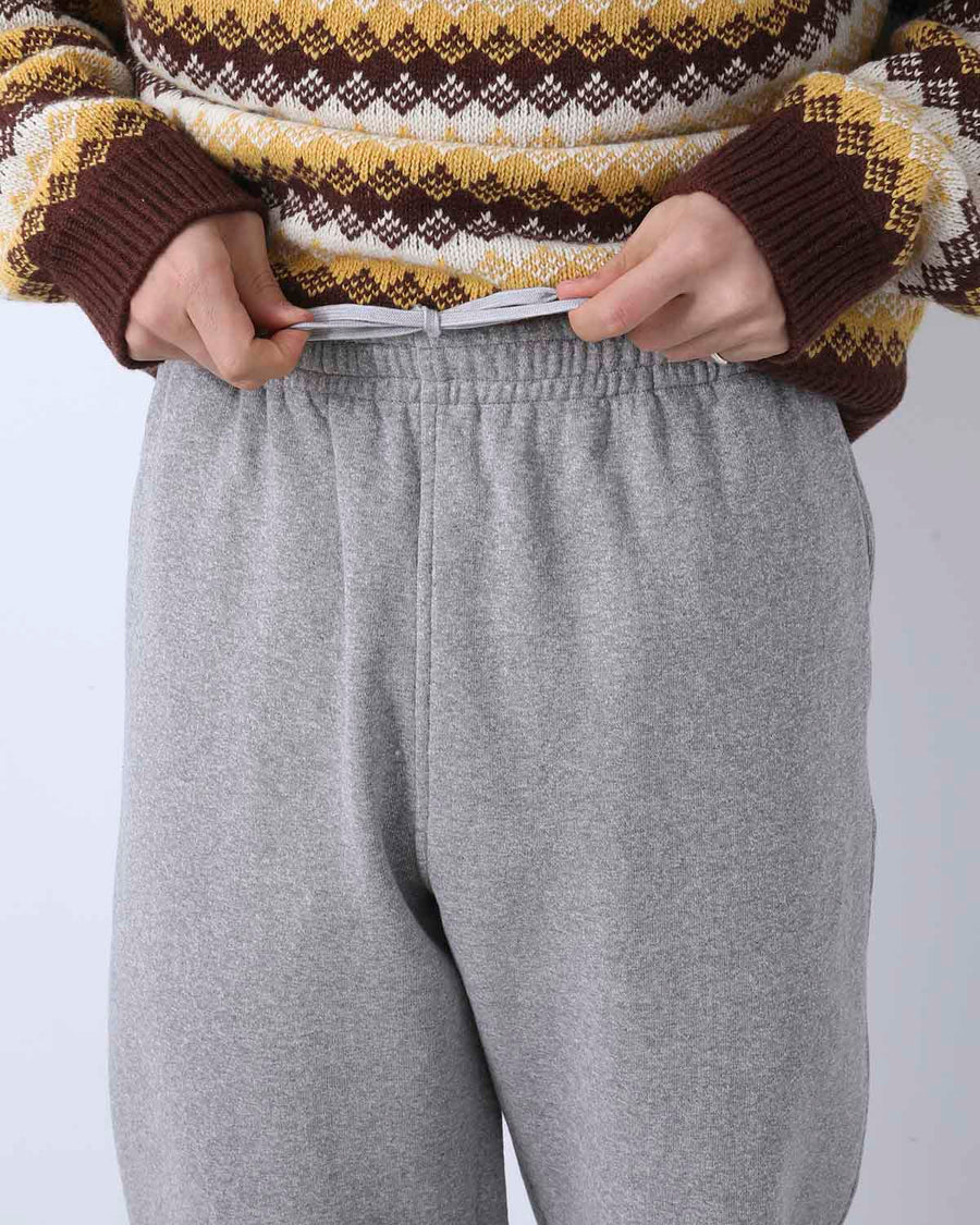 希少な旧編機である吊り編み機を使い、ビンテージ感のある粗野なコットンをゆっくりと時間をかけて編み上げたスウェットパンツです。
