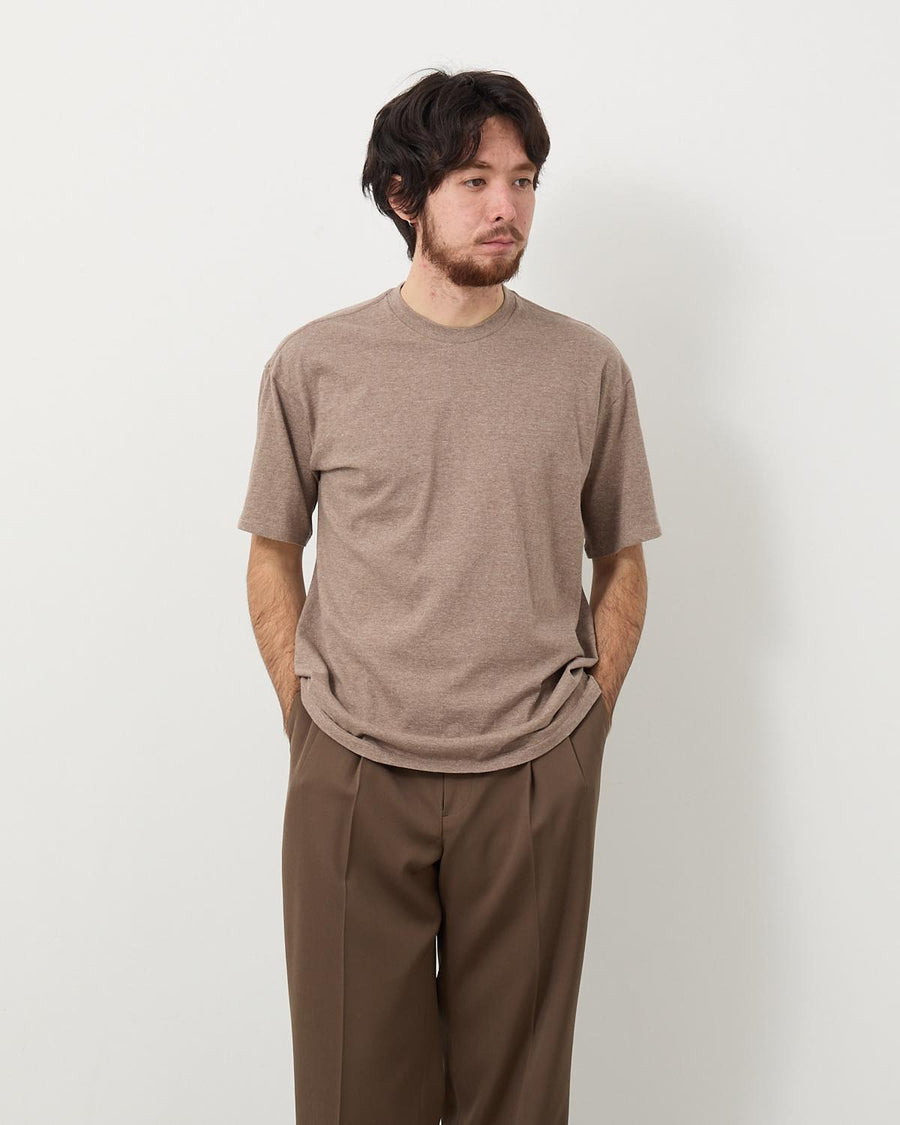 原料の選定から糸の撚り、編み立てに至るまで、すべてにこだわり抜いて丁寧に作り上げた丸胴天竺素材のショートスリーブTシャツです。