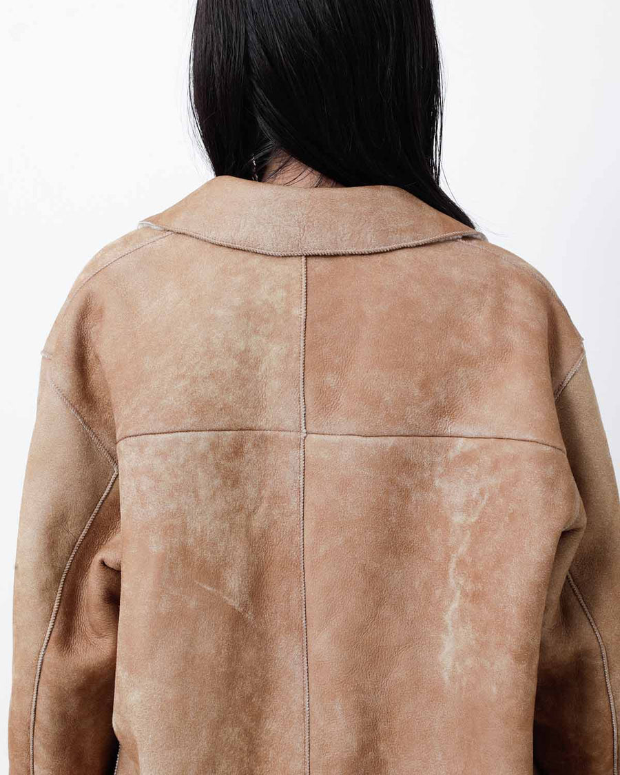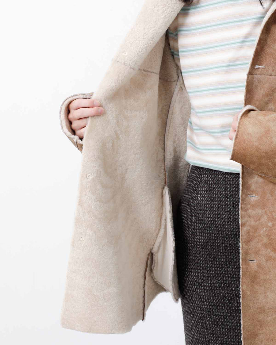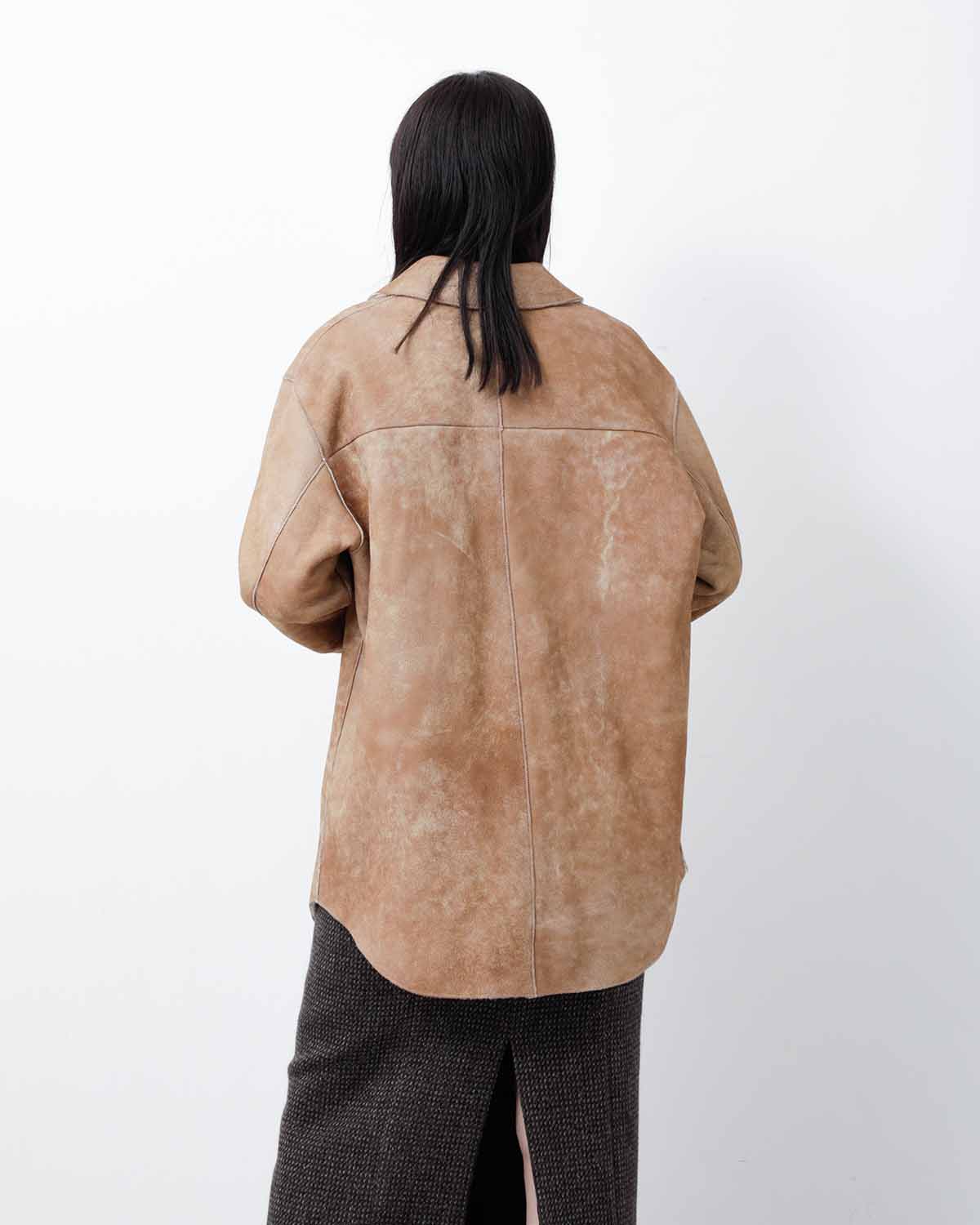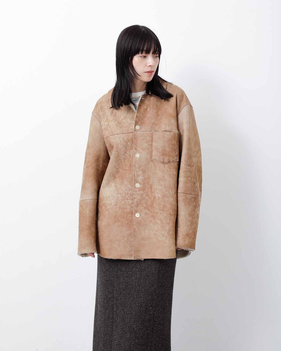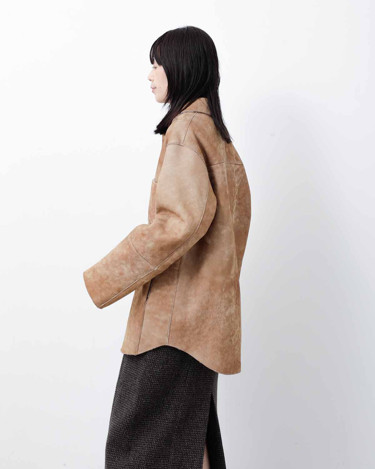 トルコ産の羊毛原皮を使用し、カーリーとストレートの中間的な風合いに仕上げたウールムートンのシャツブルゾンです。