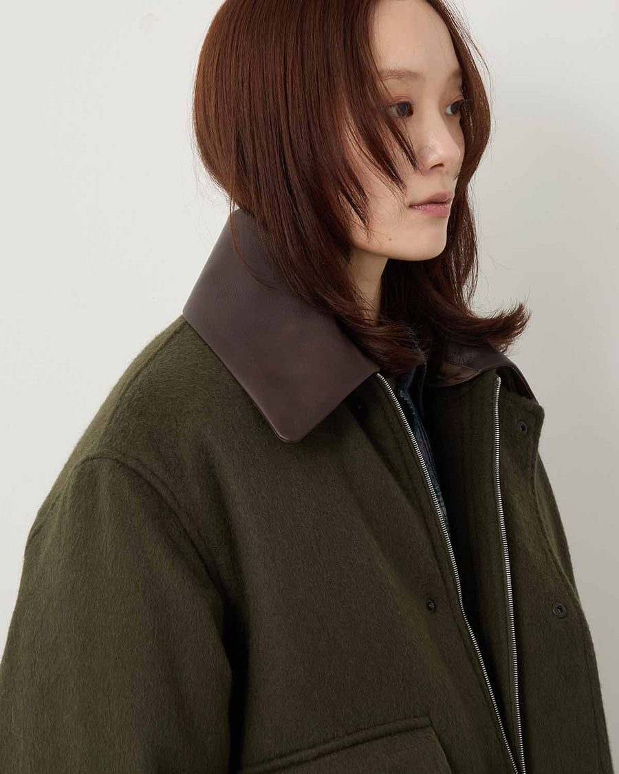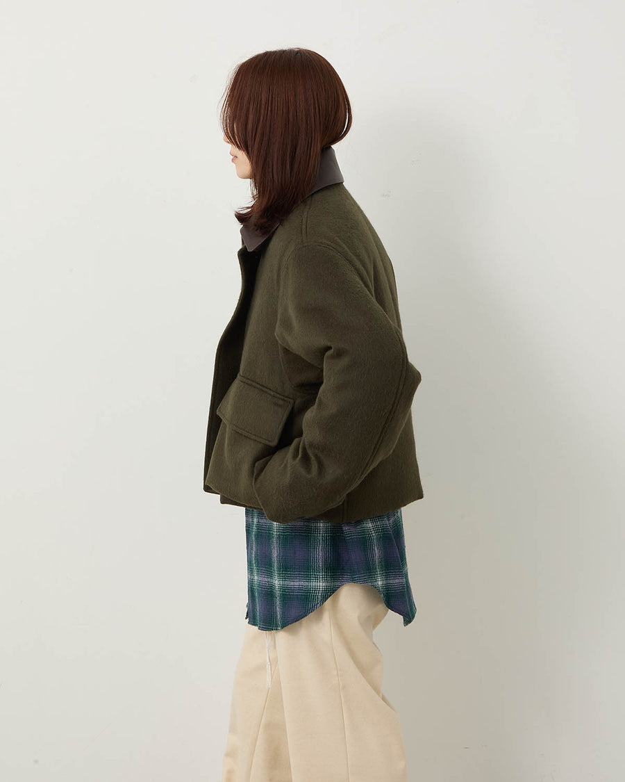 モンゴルの雄大な自然に育まれたベビーキャメルを100%使用し、丁寧に起毛加工を施したフランネル素材のショートブルゾンです。