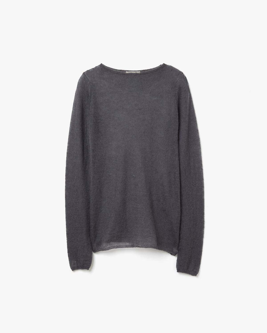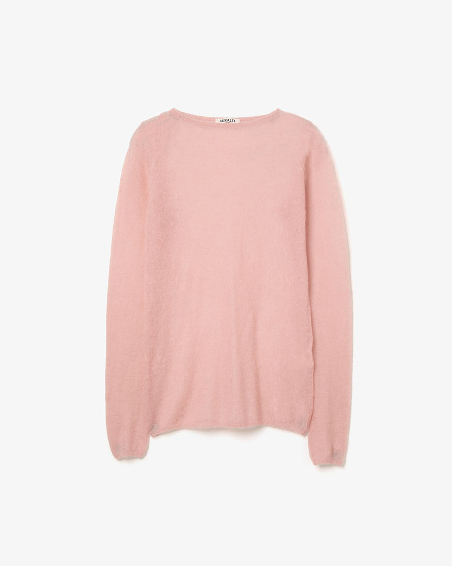 AURALEE KID MOHAIR SHEER KNIT BOAT-NECK P/O