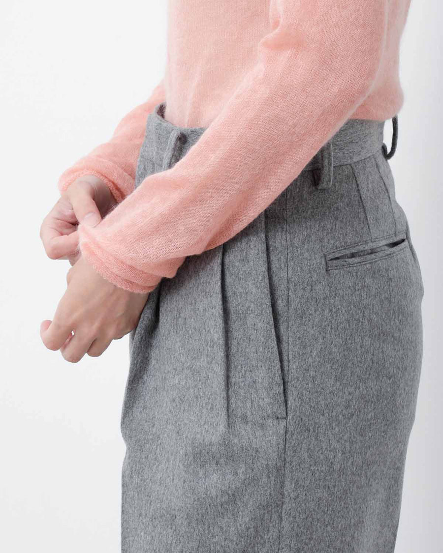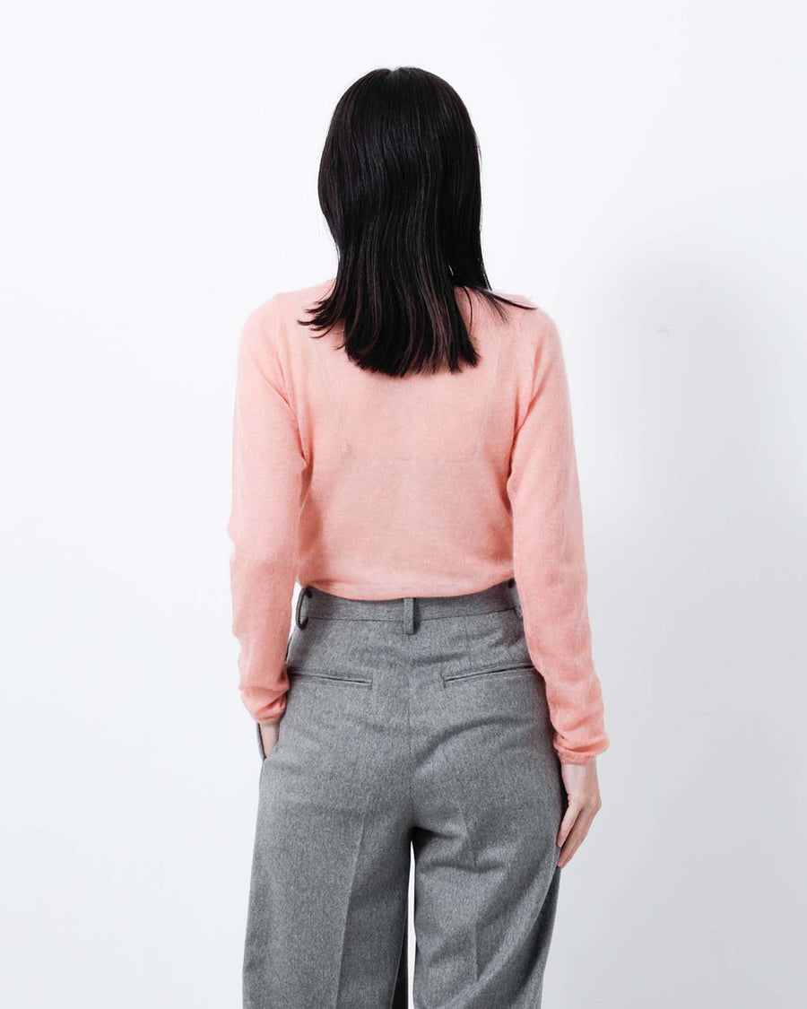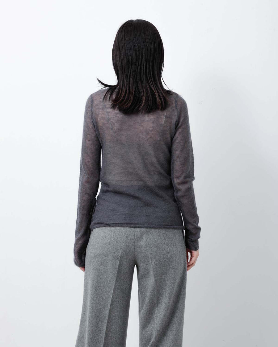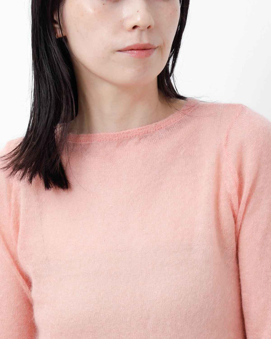 キッドモヘヤの極細糸で編み上げた、上品な透け感のあるボートネックニットです。