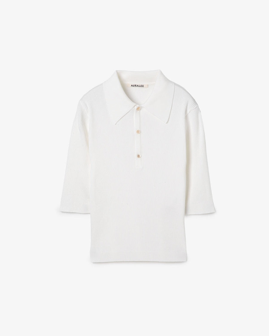 AURALEE COTTON HIGH GAUGE RIB KNIT POLO