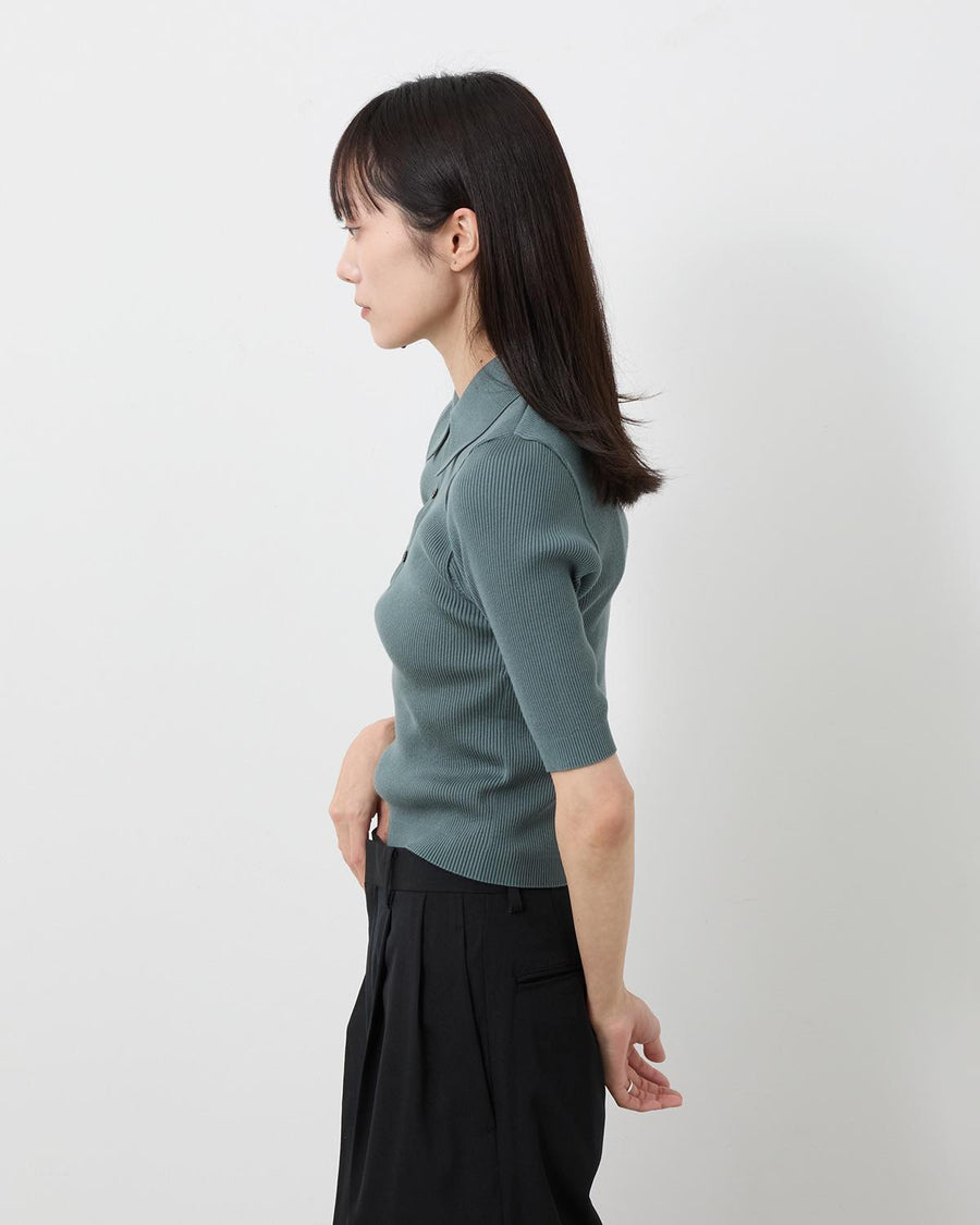 エジプト産の超長綿・ギザコットンを使用し、20ゲージで限界まで度目を詰めて丁寧に編み立てたリブニットポロです。
