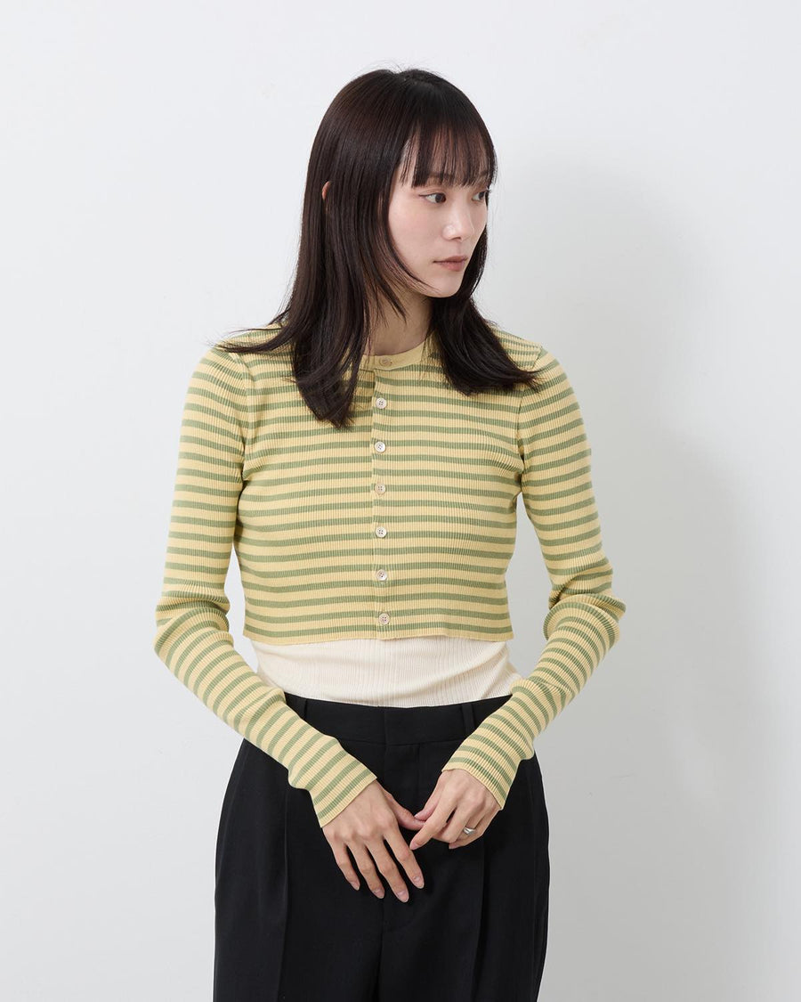 エジプト産の超長綿・ギザコットンを使用し、20ゲージで限界まで度目を詰めて丁寧に編み立てたリブニットカーディガンです。