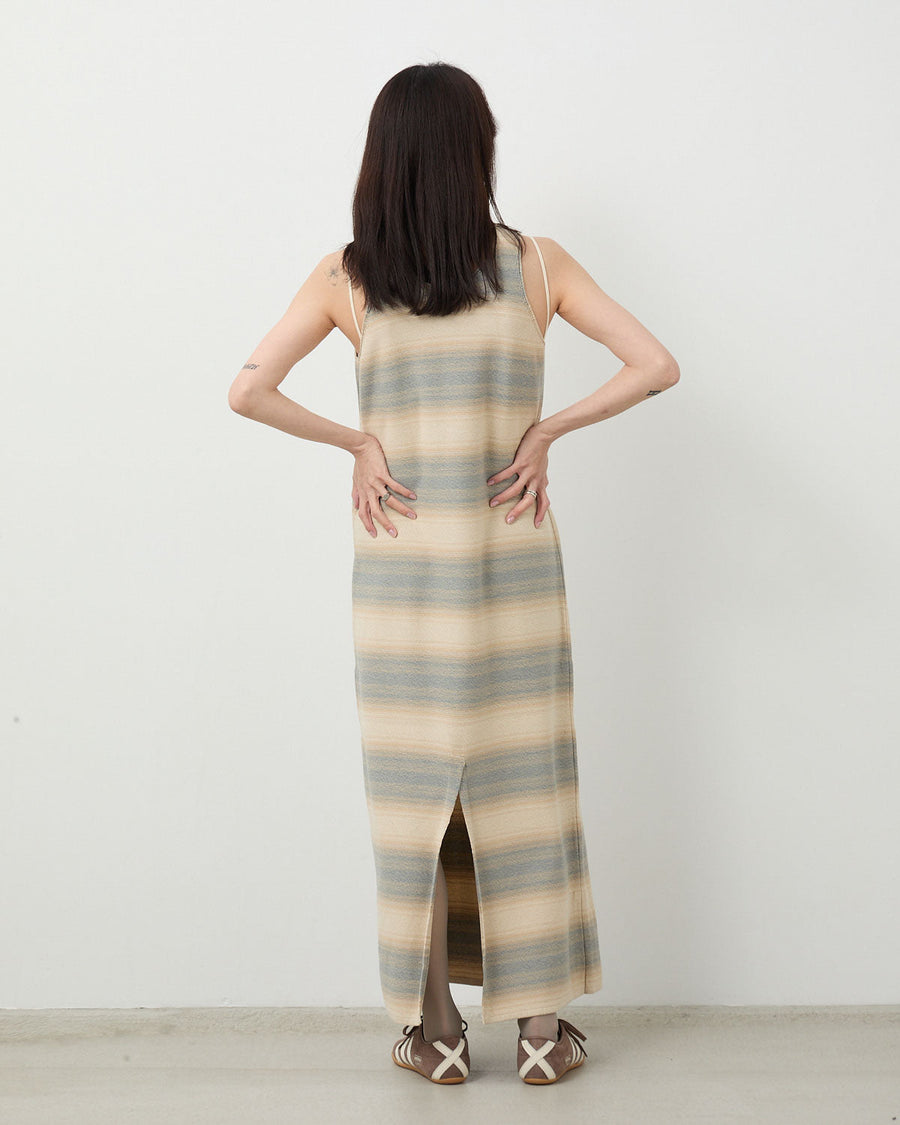 AURALEE COTTON SILK GRADIENT STRIPE KNIT DRESS