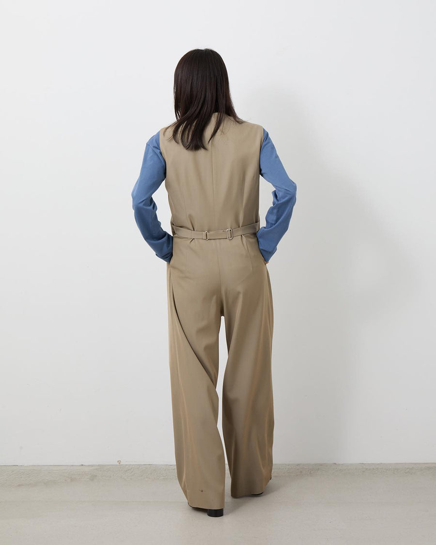 スーパー140’s梳毛ウールを使用し、極限まで高密度に織り上げたギャバジン素材のジャンプスーツです。