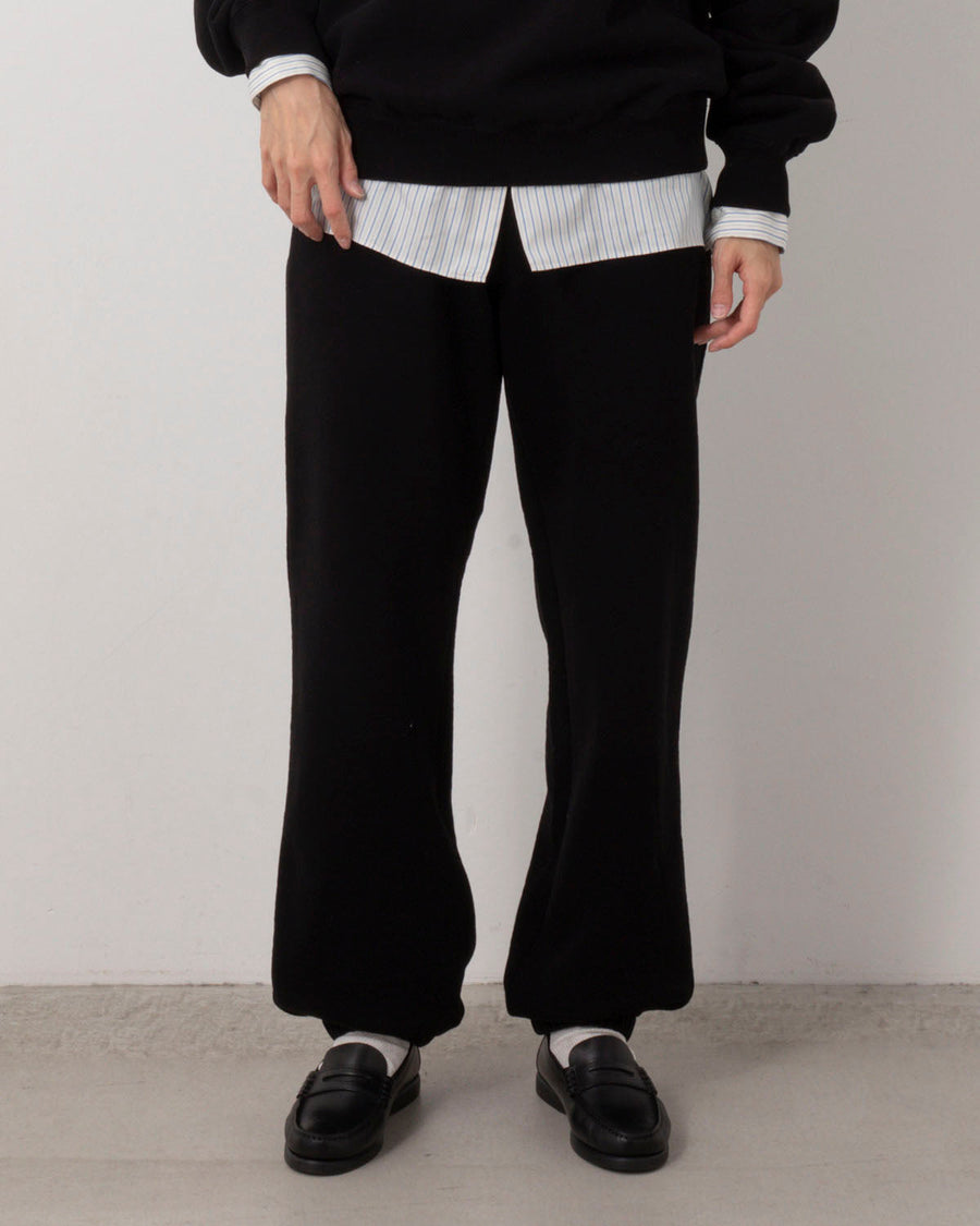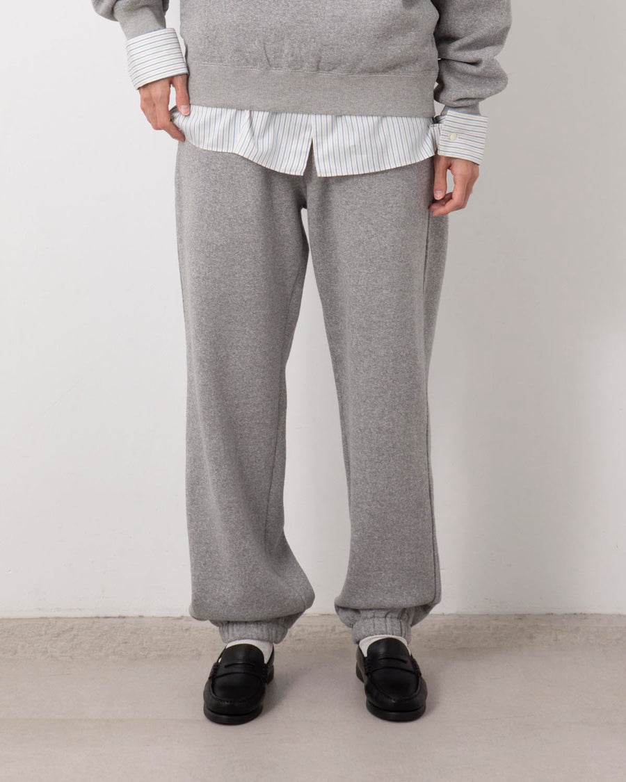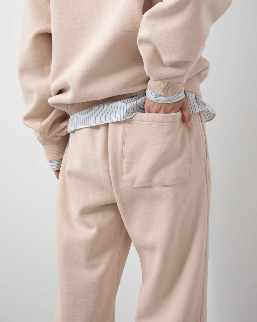 希少な旧編機である吊り編み機を使い、ビンテージ感のある粗野なコットンをゆっくりと時間をかけて編み上げたスウェットパンツです。