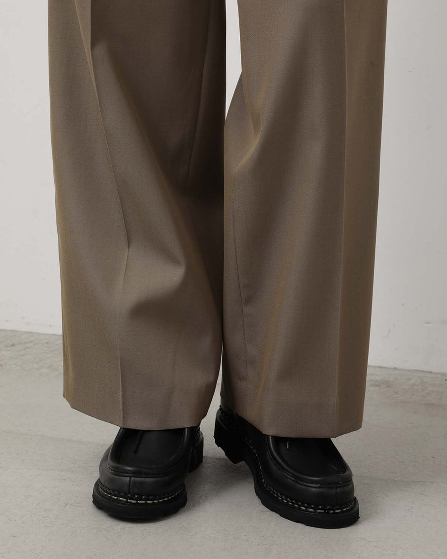 Super140'sウールを使用し限界まで高密度に織り上げた、〈AURALEE〉定番のウールギャバジン素材のスラックスです。