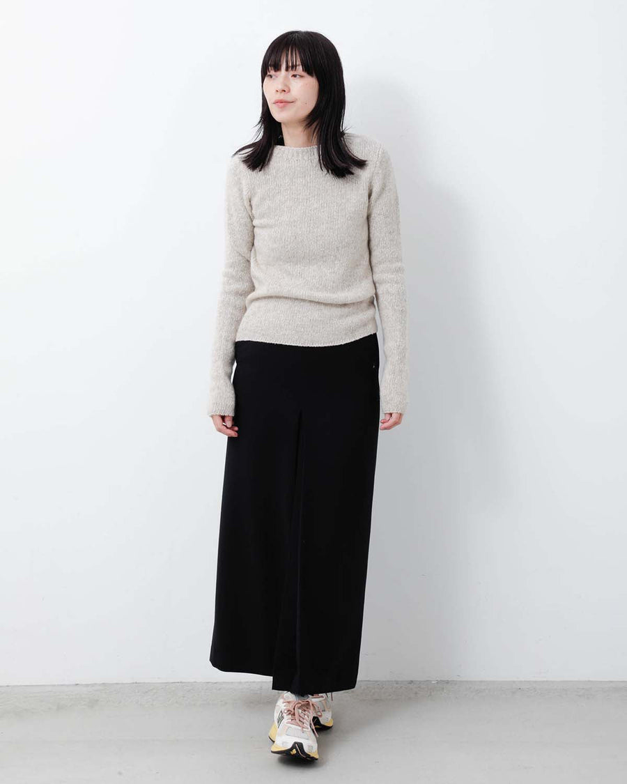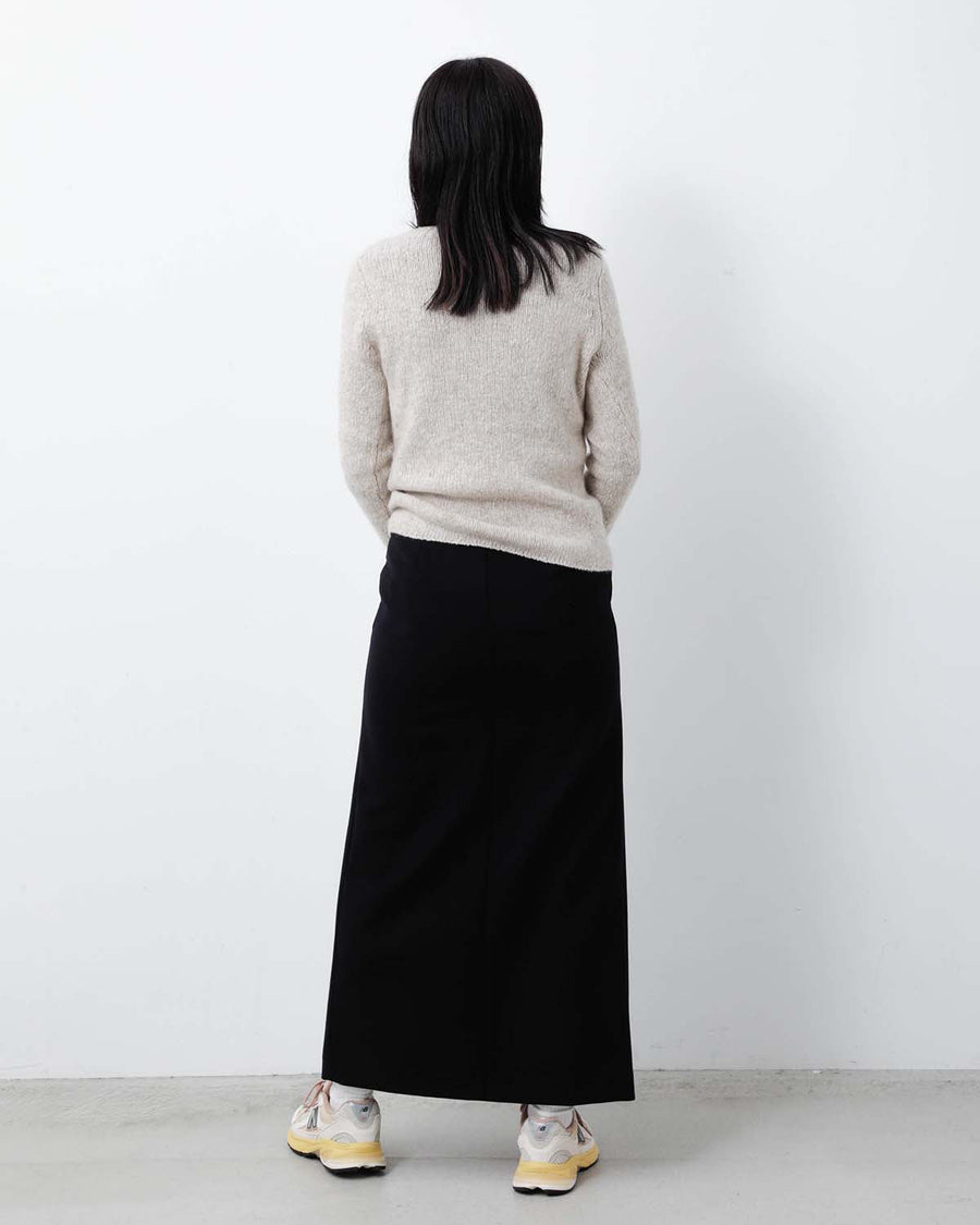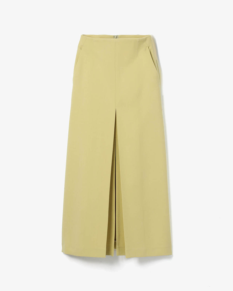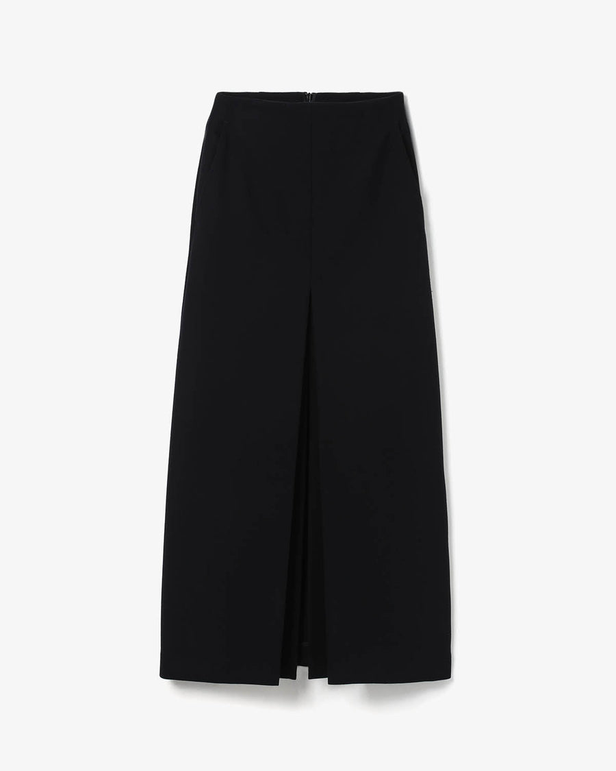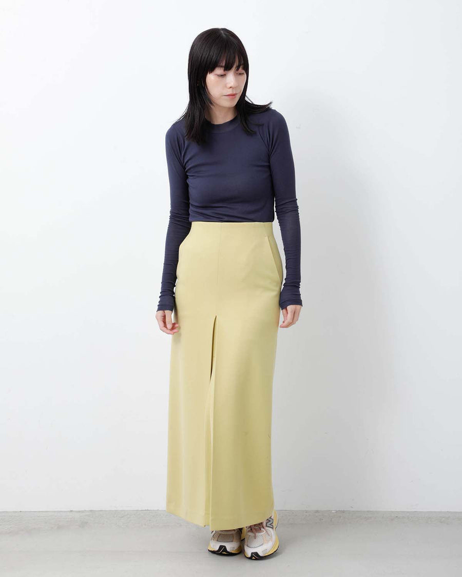 フロントスリット入りのマキシ丈スカートです。 極細ウールとポリウレタンのダブルクロス素材による、ハリ感と伸縮性が美しいシルエットを生み出しています。