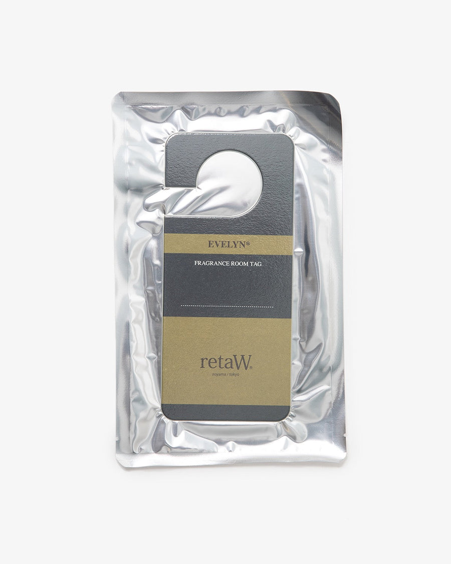 厚い紙状のシートに〈retaW〉オリジナルの芳香を閉じ込めたフレグランス・ルームタグです。