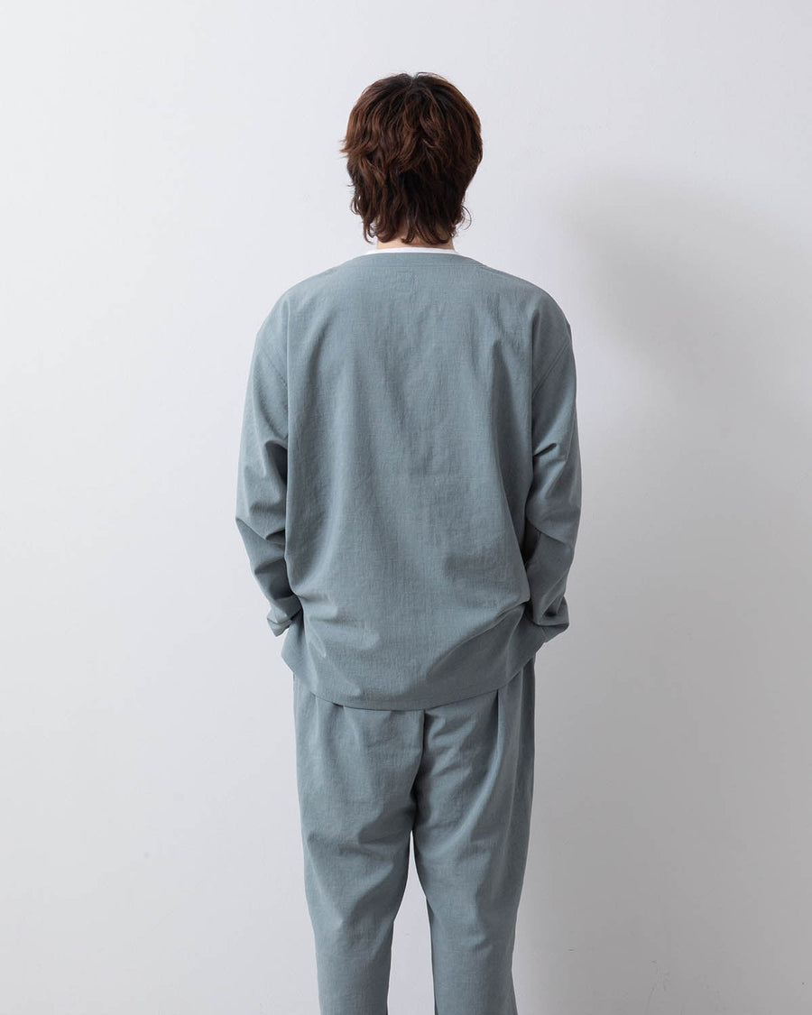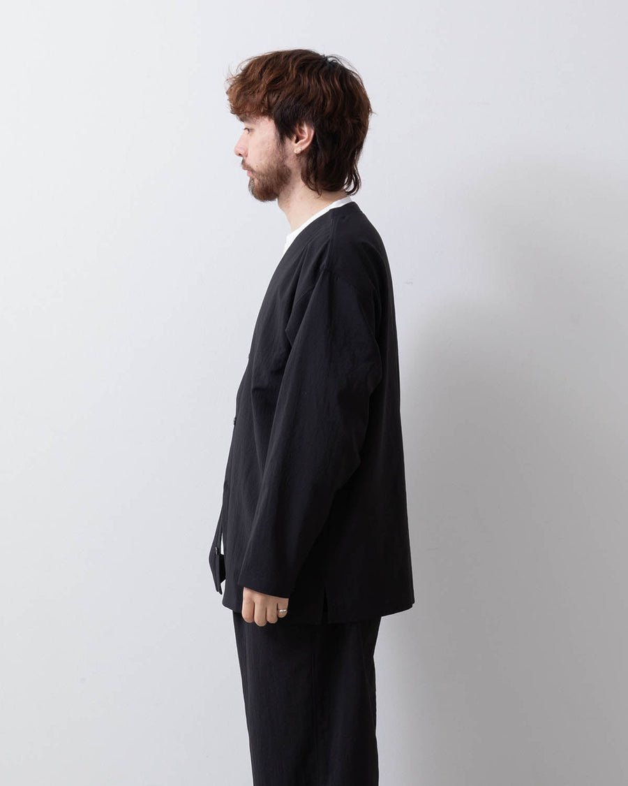 ポリエステル製のオックスフォード織り素材は通気性がよく、さらりとした涼感のある肌触り。非常に春夏らしい一着に仕上がっています。