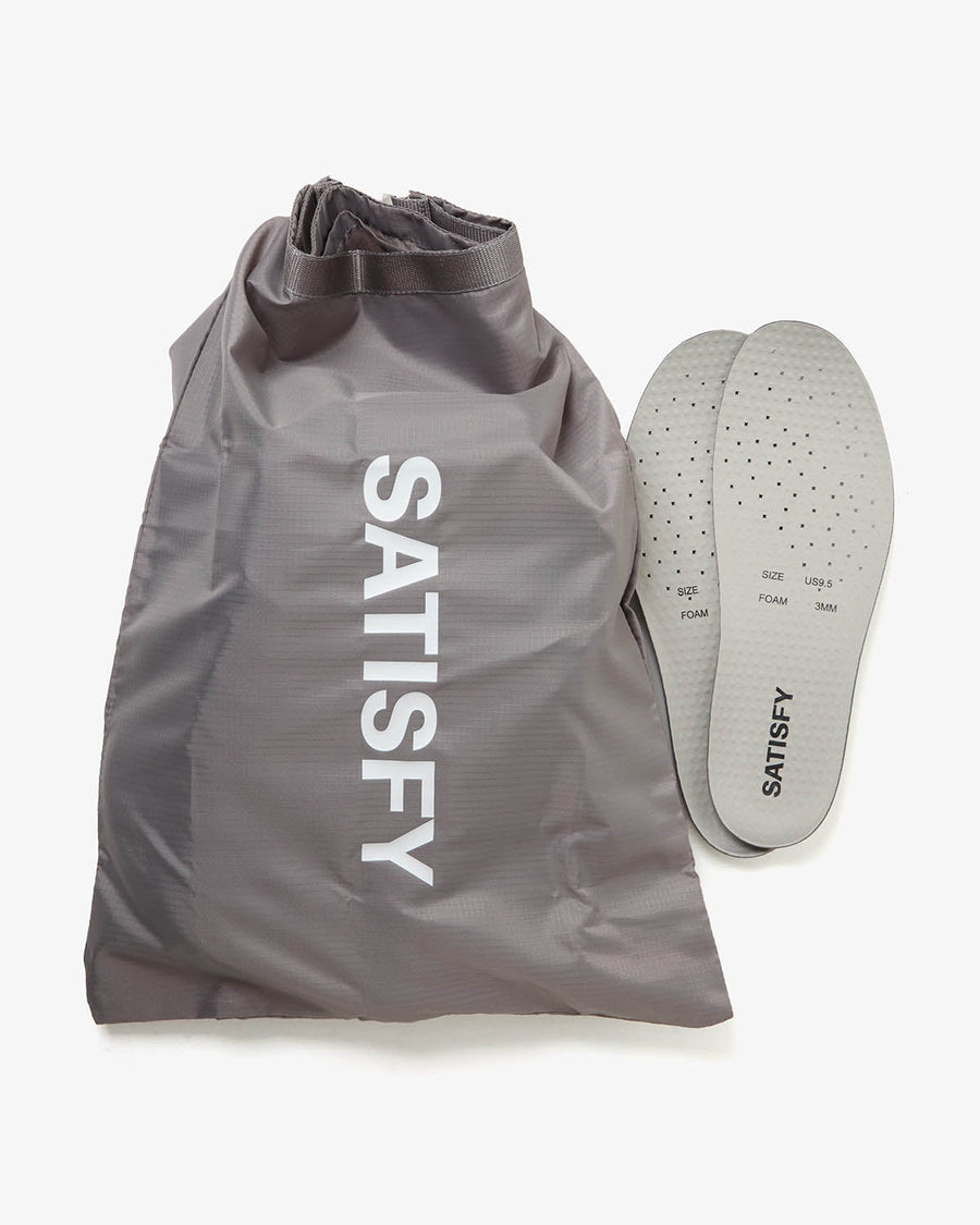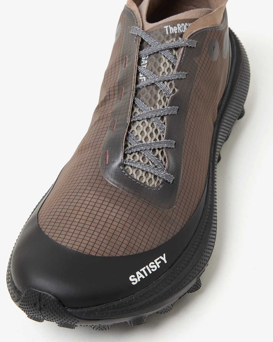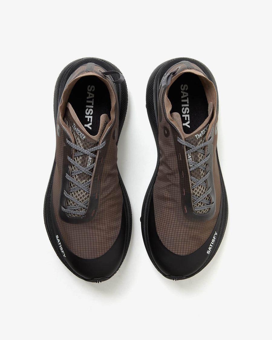 トレイルから街まで快適に走れるよう設計された、〈SATISFY〉のオリジナルランニングシューズ「THE ROCKER™」です。