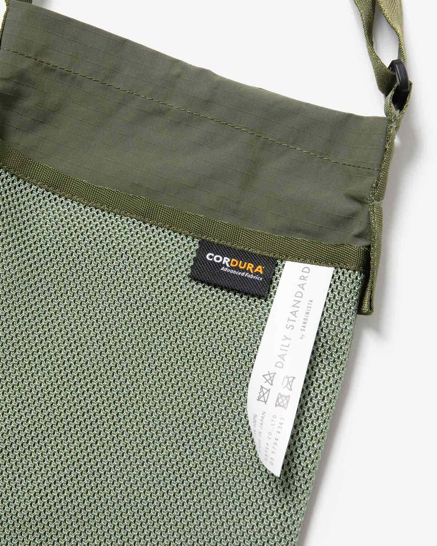 〈SANDINISTA〉”DAILY STANDARD”ラインより、耐久性に優れたCORDURA® ナイロンメッシュ素材とリップストップ生地を組み合わせたミニマルなデザインのサコッシュです。