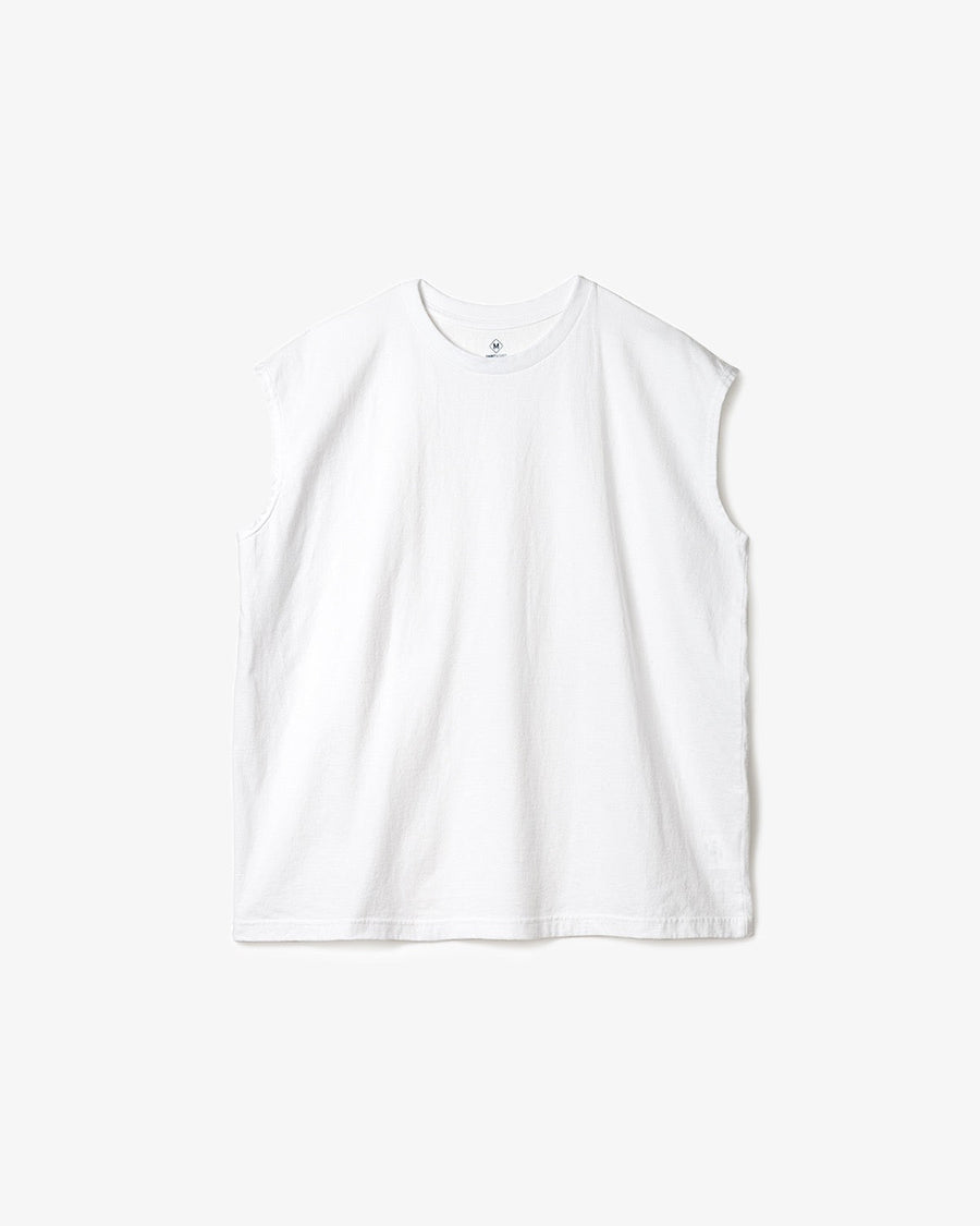 〈SANDINISTA〉”DAILY STANDARD”ラインより、新定番の18番手糸アメリカコットンを使用した、イージーフィットのスリーブレスTシャツ です。