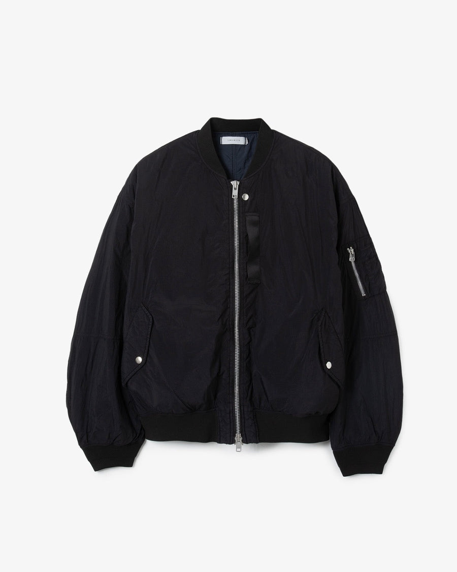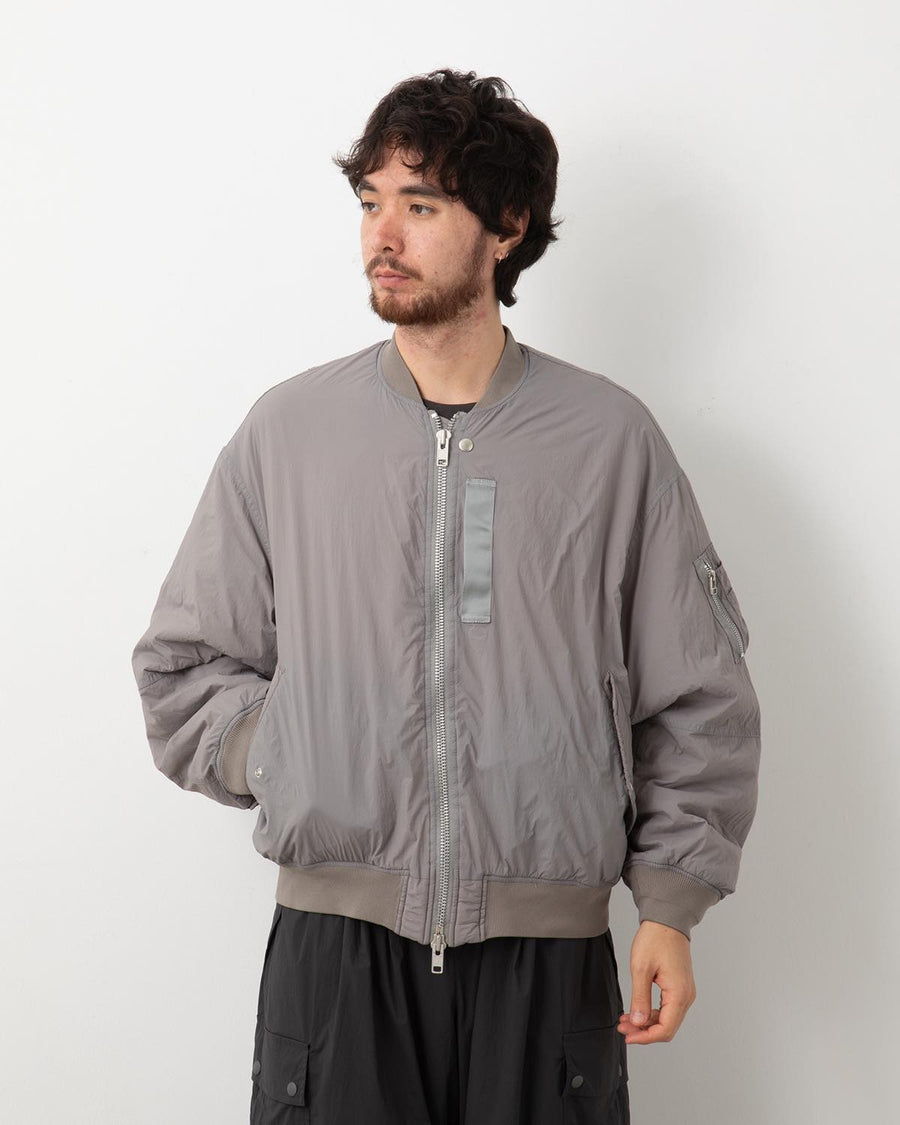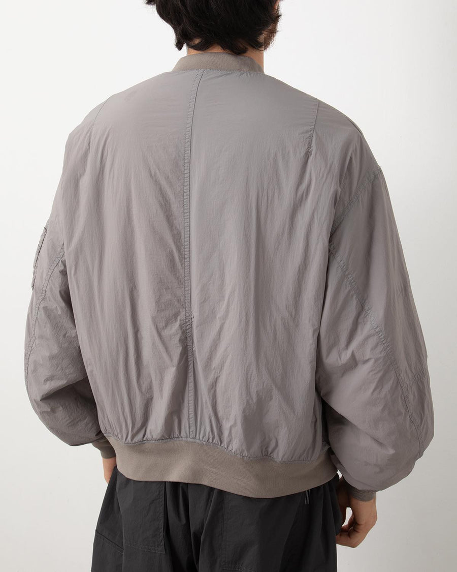 肌馴染みの良いナイロン素材を使用した、ワイドシルエットのMA-1です。