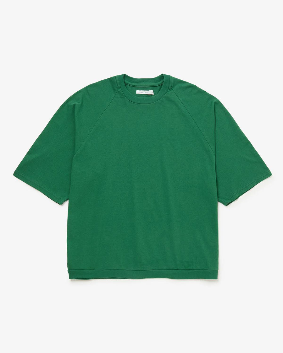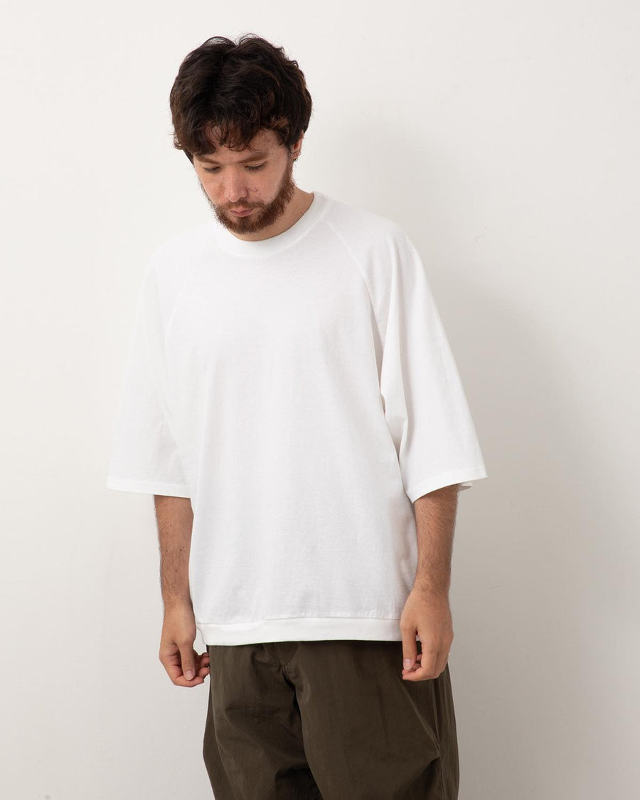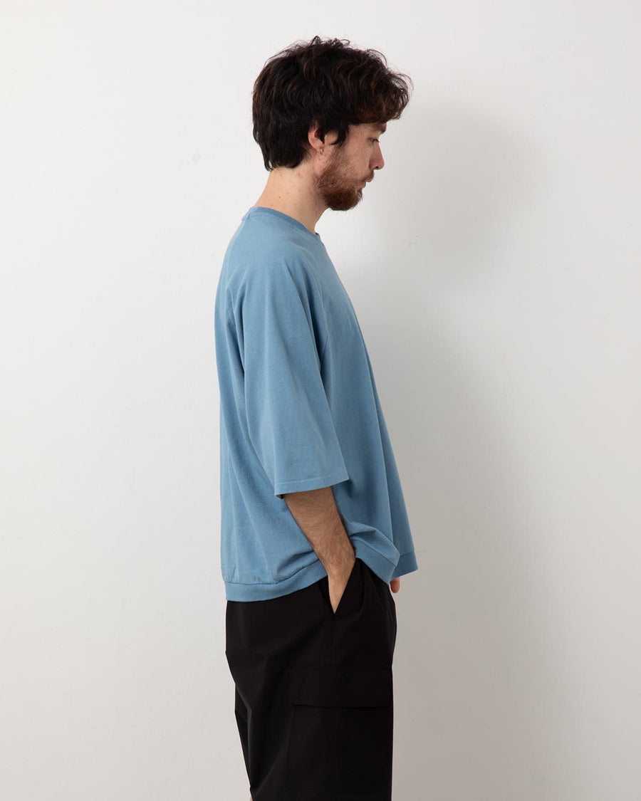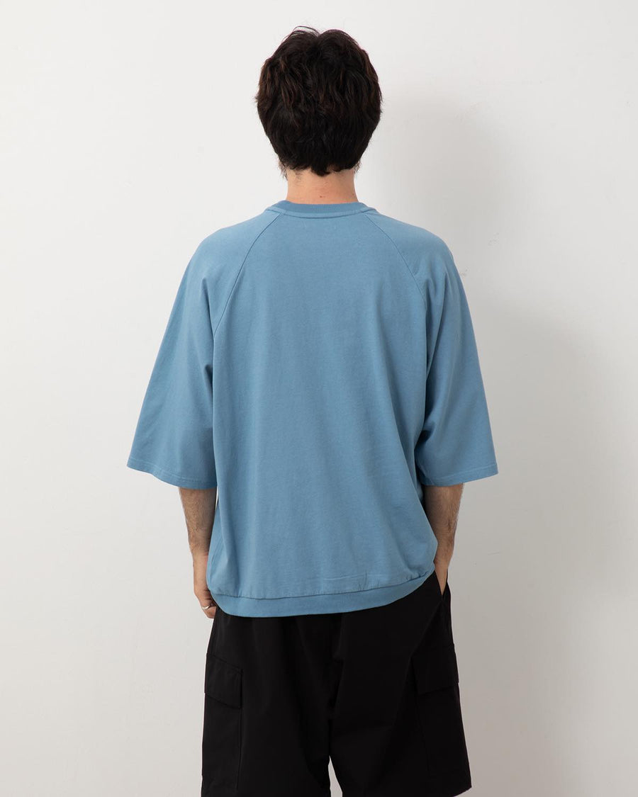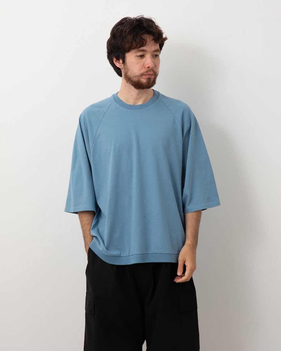 ドライタッチ(シャリ感)な風合いのアメリカコットン天竺を使用した、ラグラン仕様の5分袖丈Tシャツです。