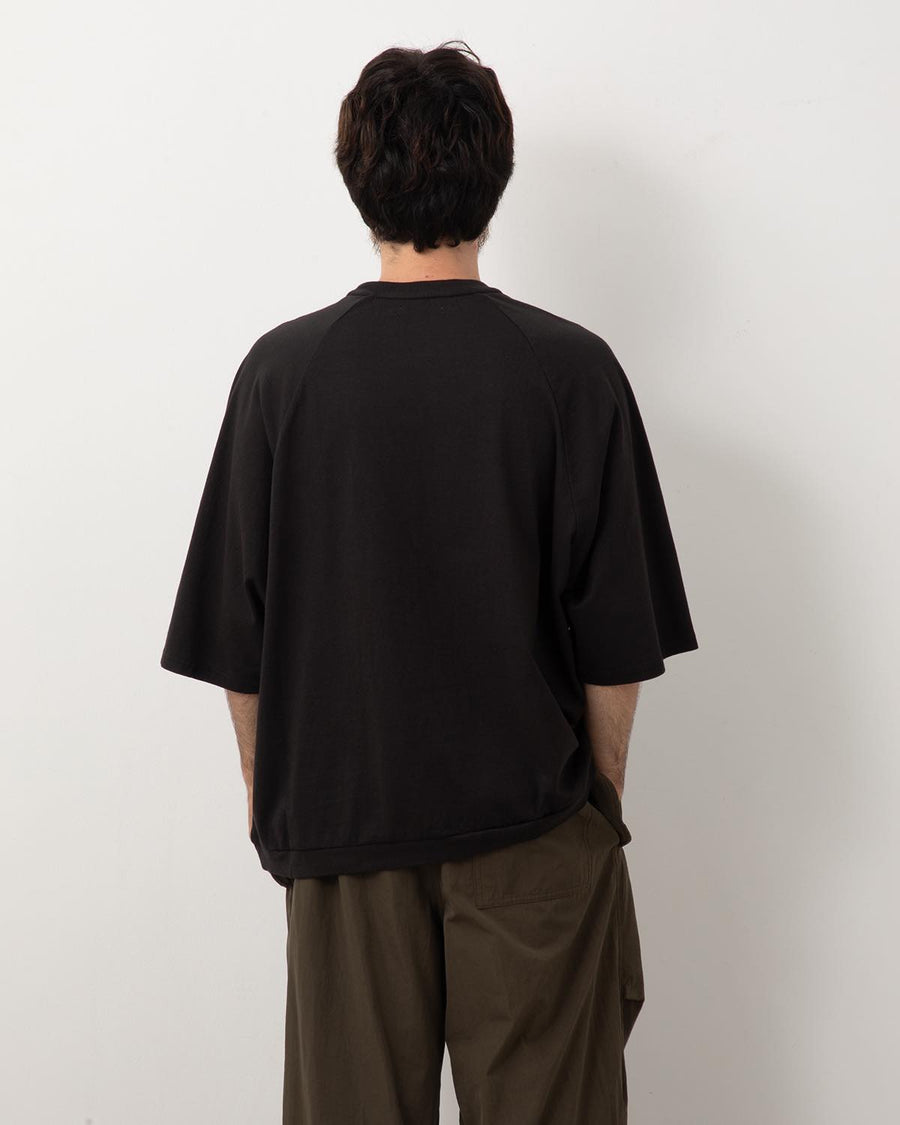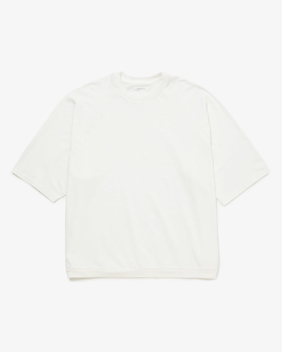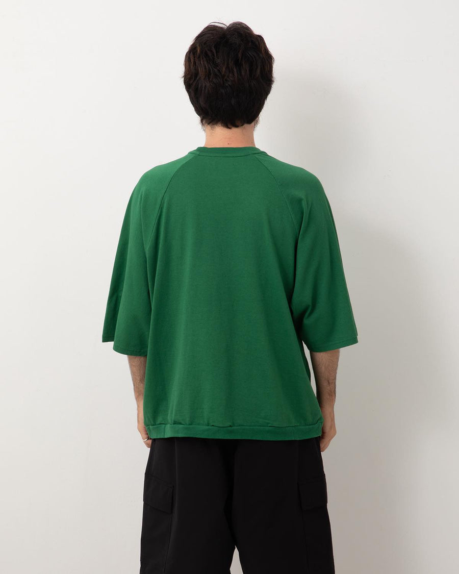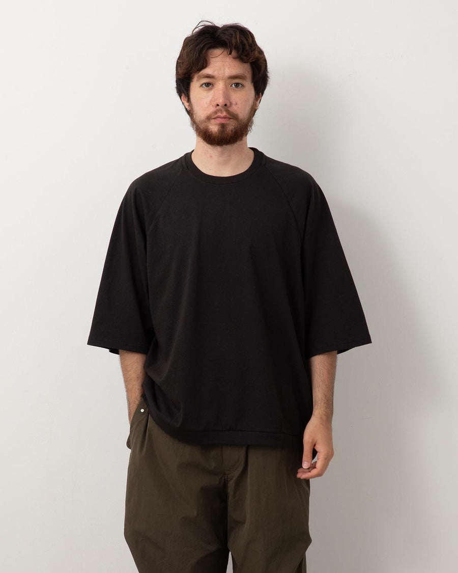 ドライタッチ(シャリ感)な風合いのアメリカコットン天竺を使用した、ラグラン仕様の5分袖丈Tシャツです。