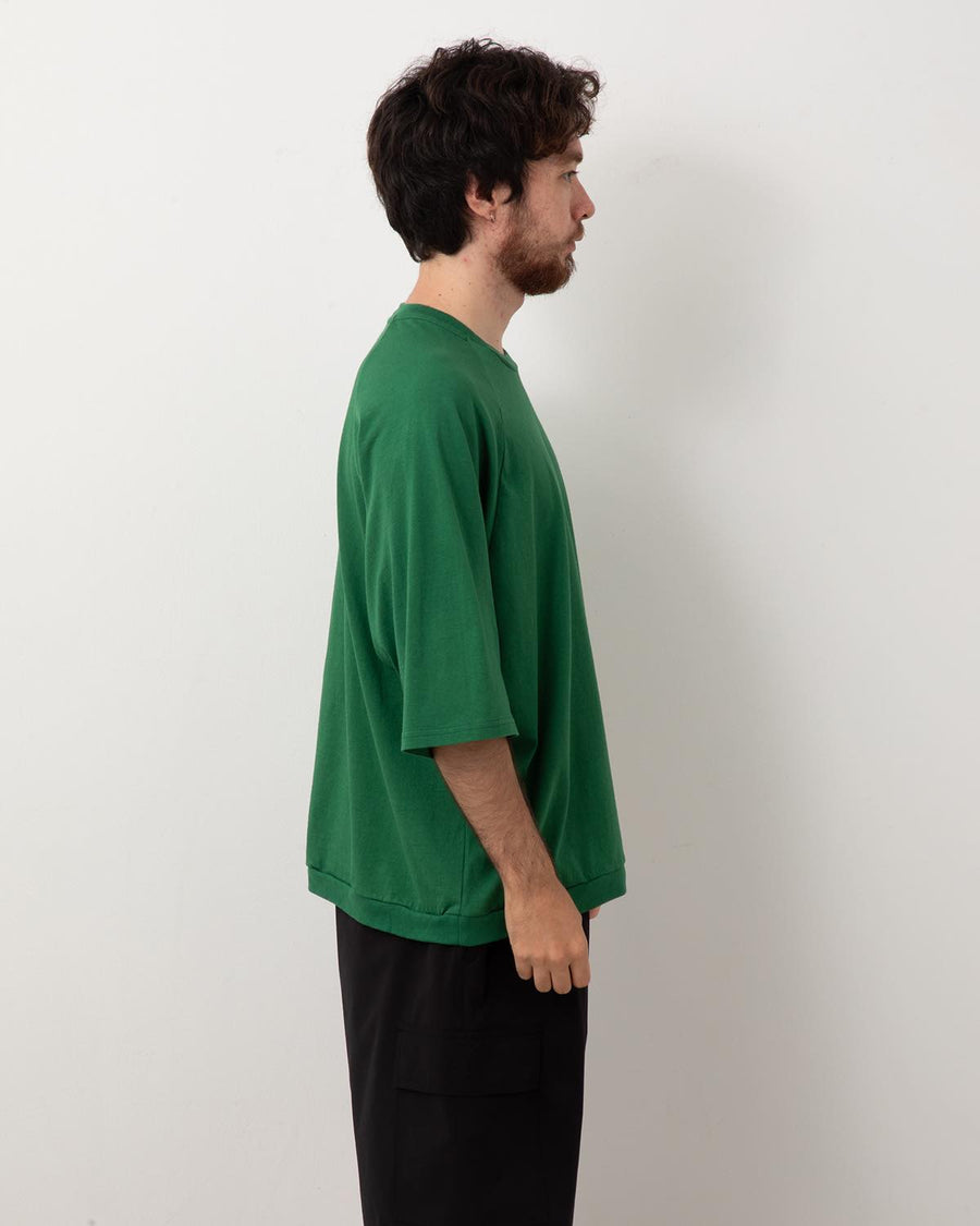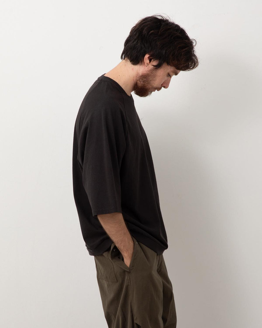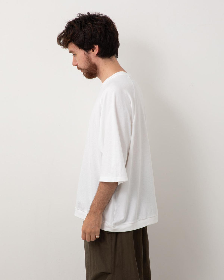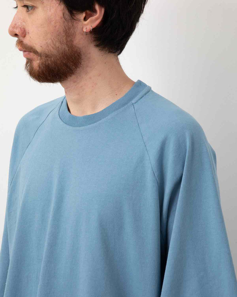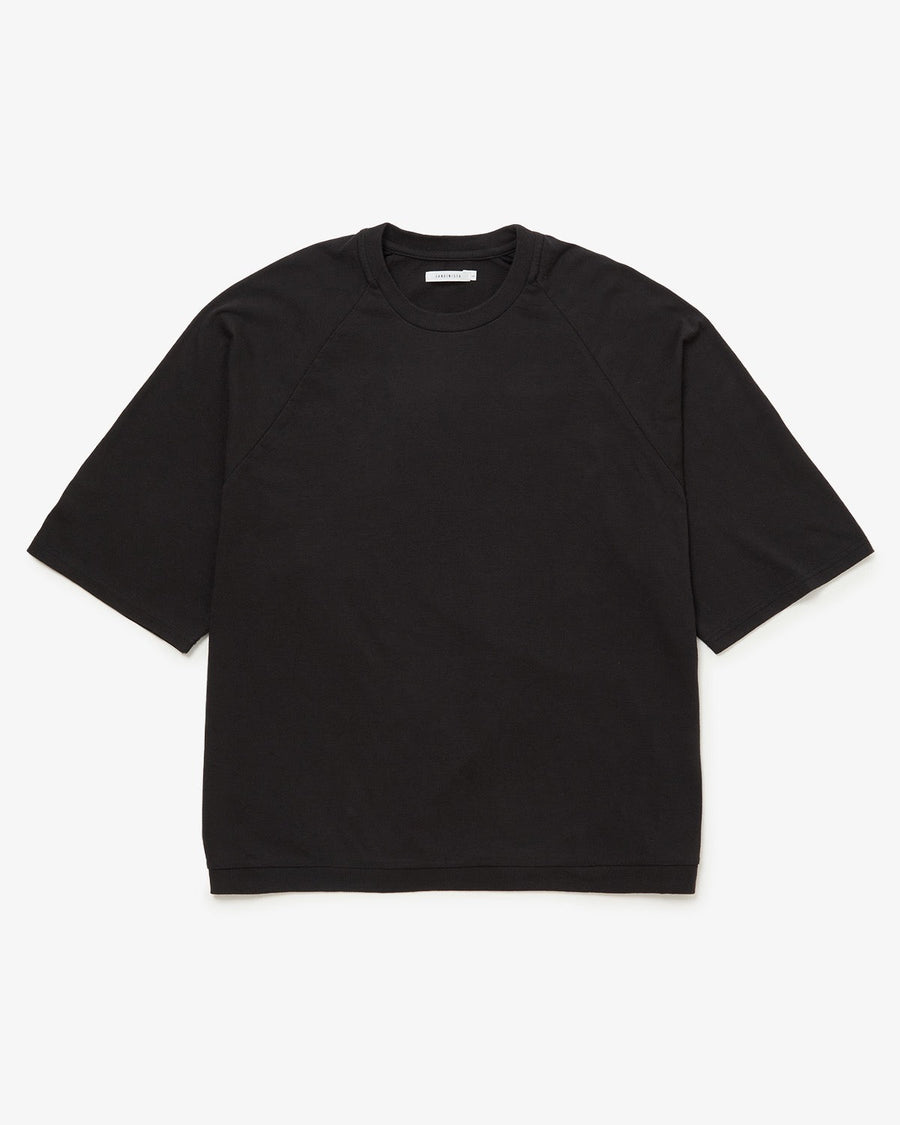 ドライタッチ(シャリ感)な風合いのアメリカコットン天竺を使用した、ラグラン仕様の5分袖丈Tシャツです。
