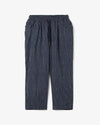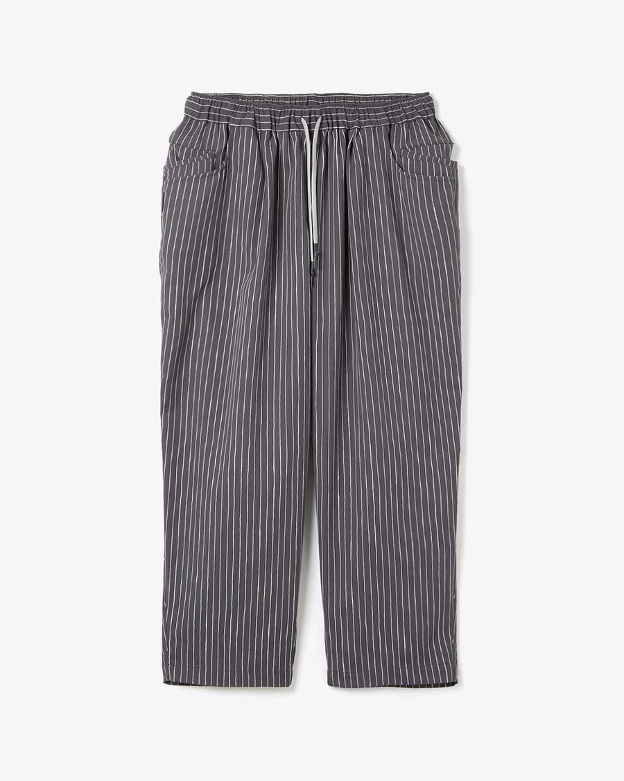 コットンをベースに2種類の合繊をブレンドした糸を混紡したオリジナルストライプ柄をプリントしたイージーパンツです。