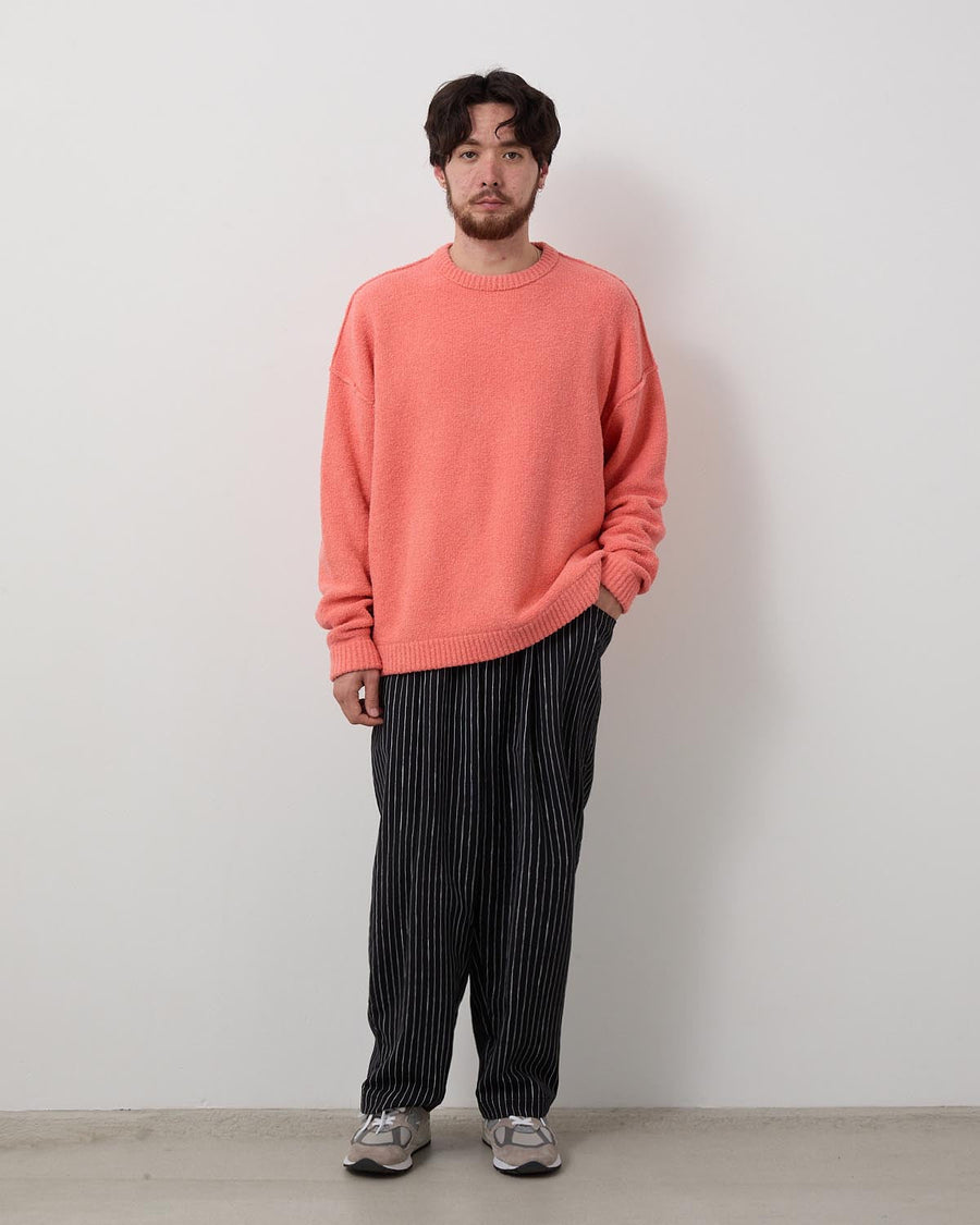 〈STRIPES FOR CREATIVE〉定番の「WIDE TAPERED EASY PANTS」をベースに、腰回りをさらに大きく、裾幅を広く設計したスーパーワイドシルエットながら、テーパードを効かせることでボリューム感と穿きやすさを両立させました。