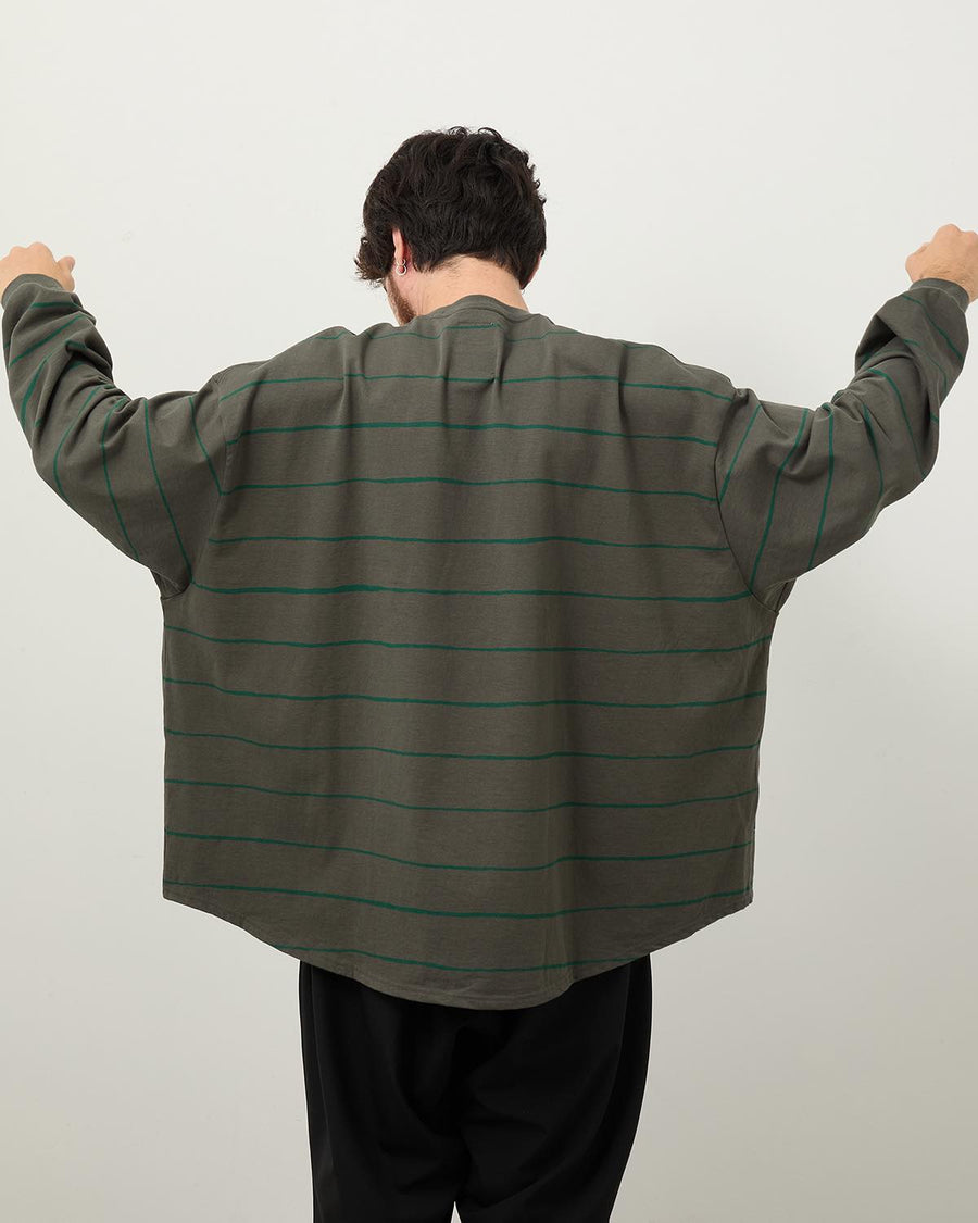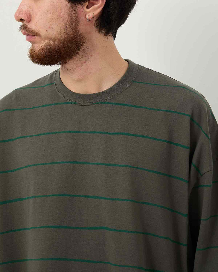 身幅と袖幅を極端に広くし、裾をラウンド形状にした、ブランド定番の「SUPER BIG WIDE STRIPE TECH LS TEE」にて別注カラーを制作。
