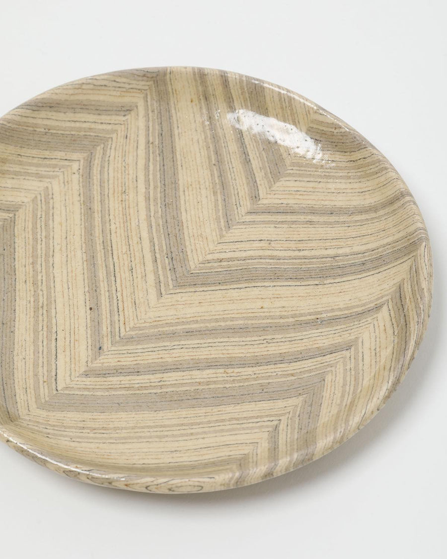 栃木県は益子町を拠点に活動する作家〈坂下花子〉が“練り上げ“と呼ばれる技法を用いて制作したパン皿です。