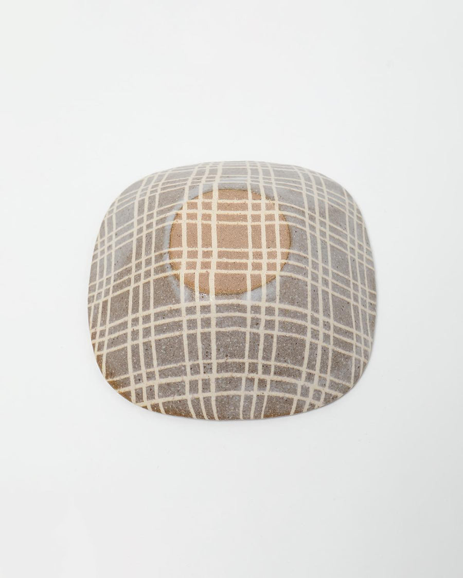 坂下花子 角ボウル - 格子 茶