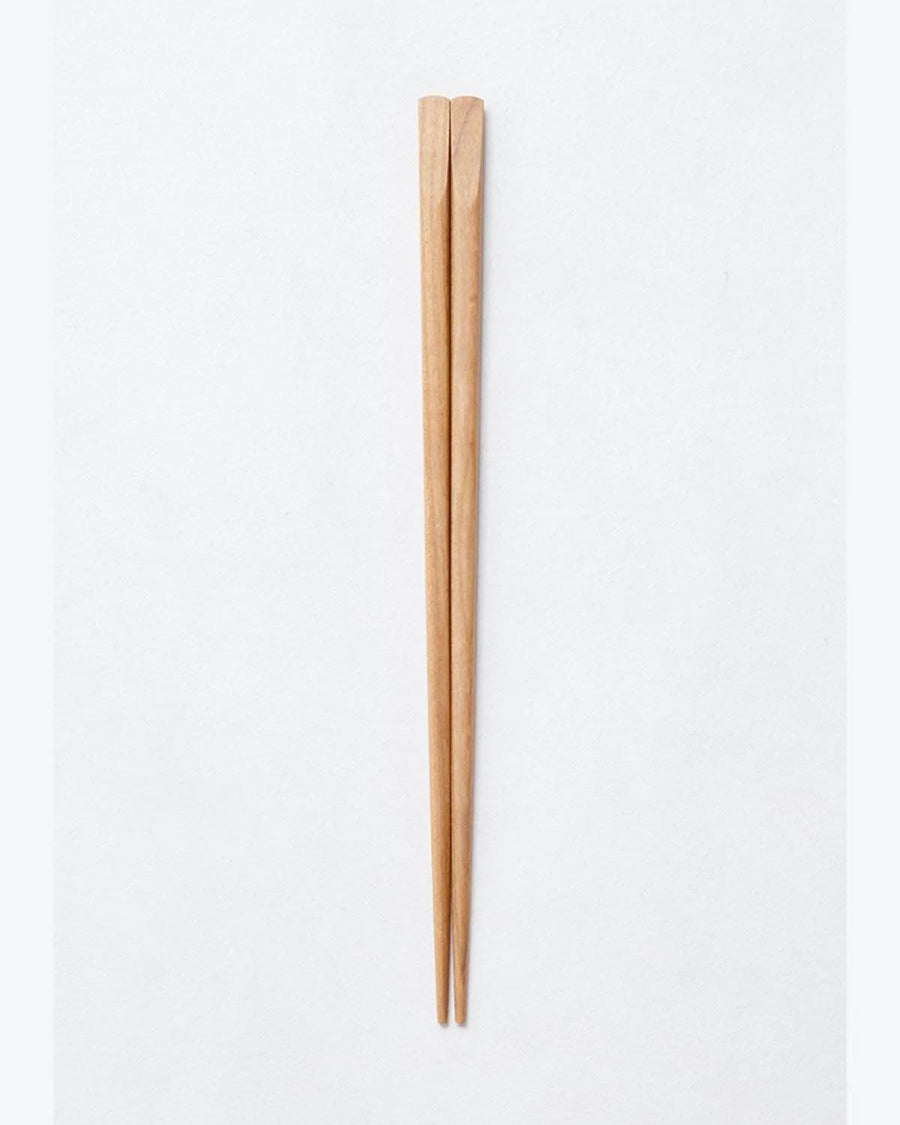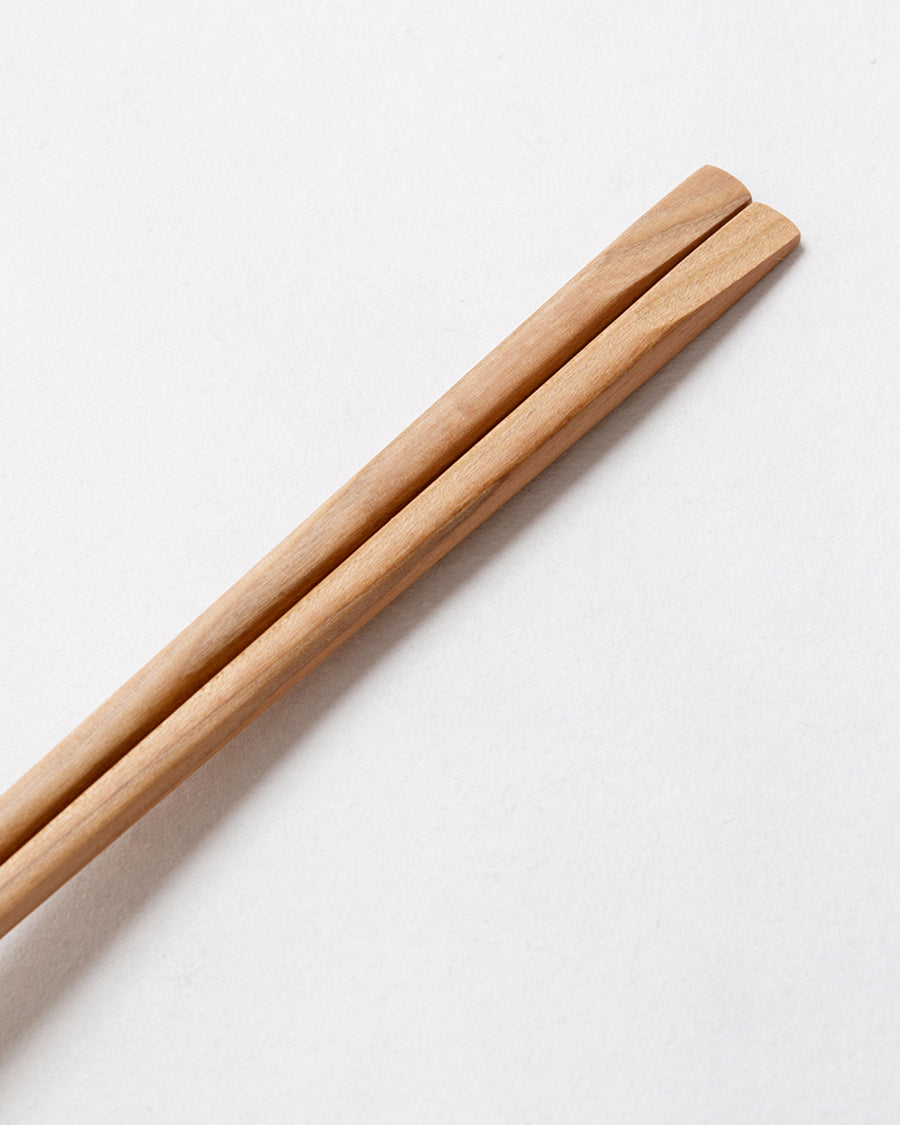 手に馴染みやすい丸みを帯びたフォルムの箸です。桜、楓(かえで)、楢(なら)の木を丁寧に切削加工し、食卓に馴染むマット仕上げのウレタン塗装で作られています。こちらは女性・お子様に適したサイズです。