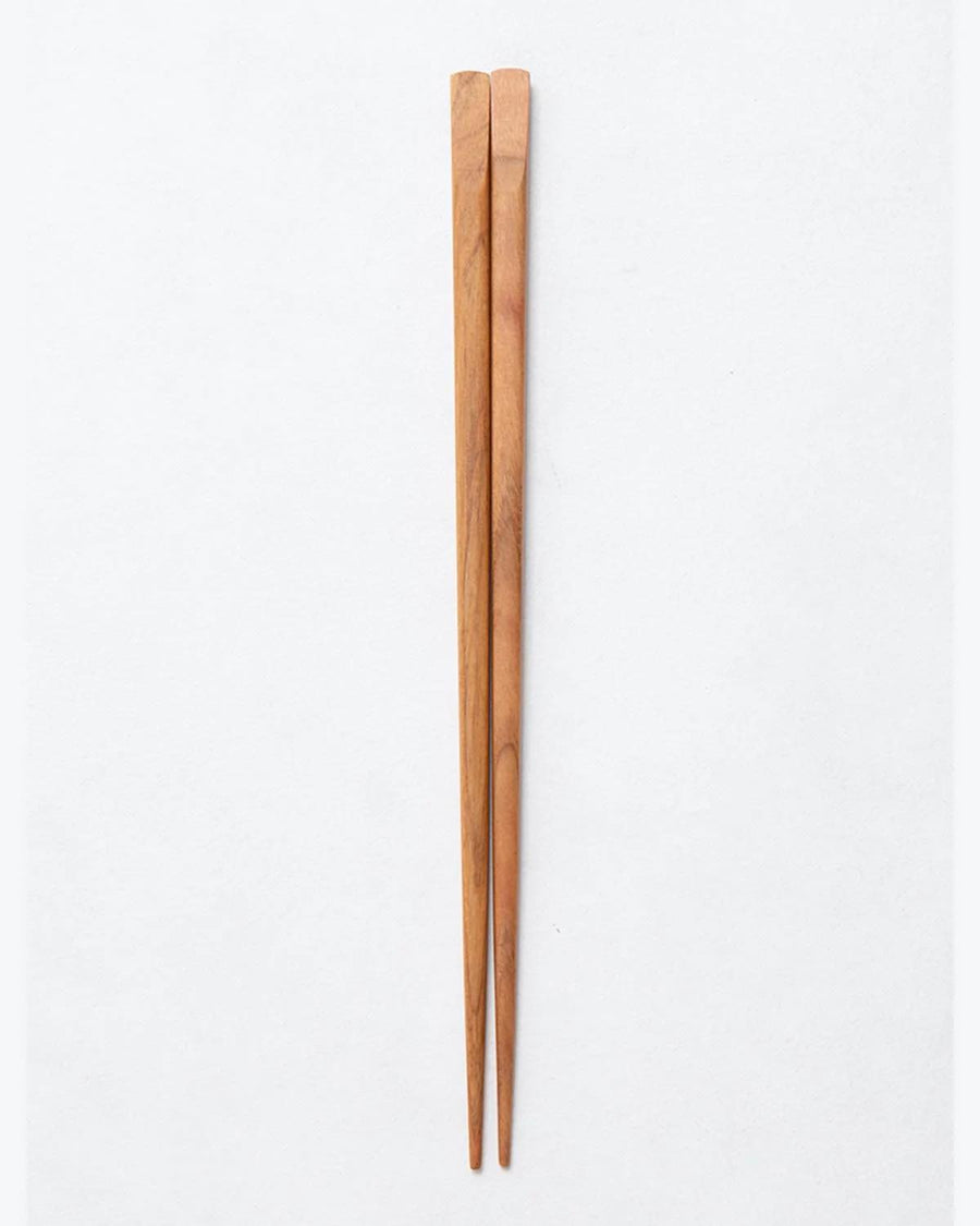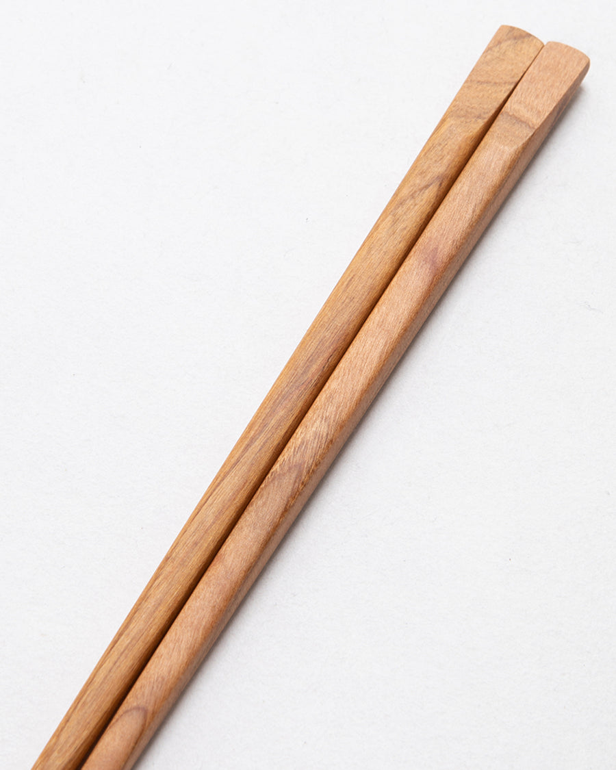 手に馴染みやすい丸みを帯びたフォルムの箸です。桜、楓(かえで)、楢(なら)の木を丁寧に切削加工し、食卓に馴染むマット仕上げのウレタン塗装で作られています。