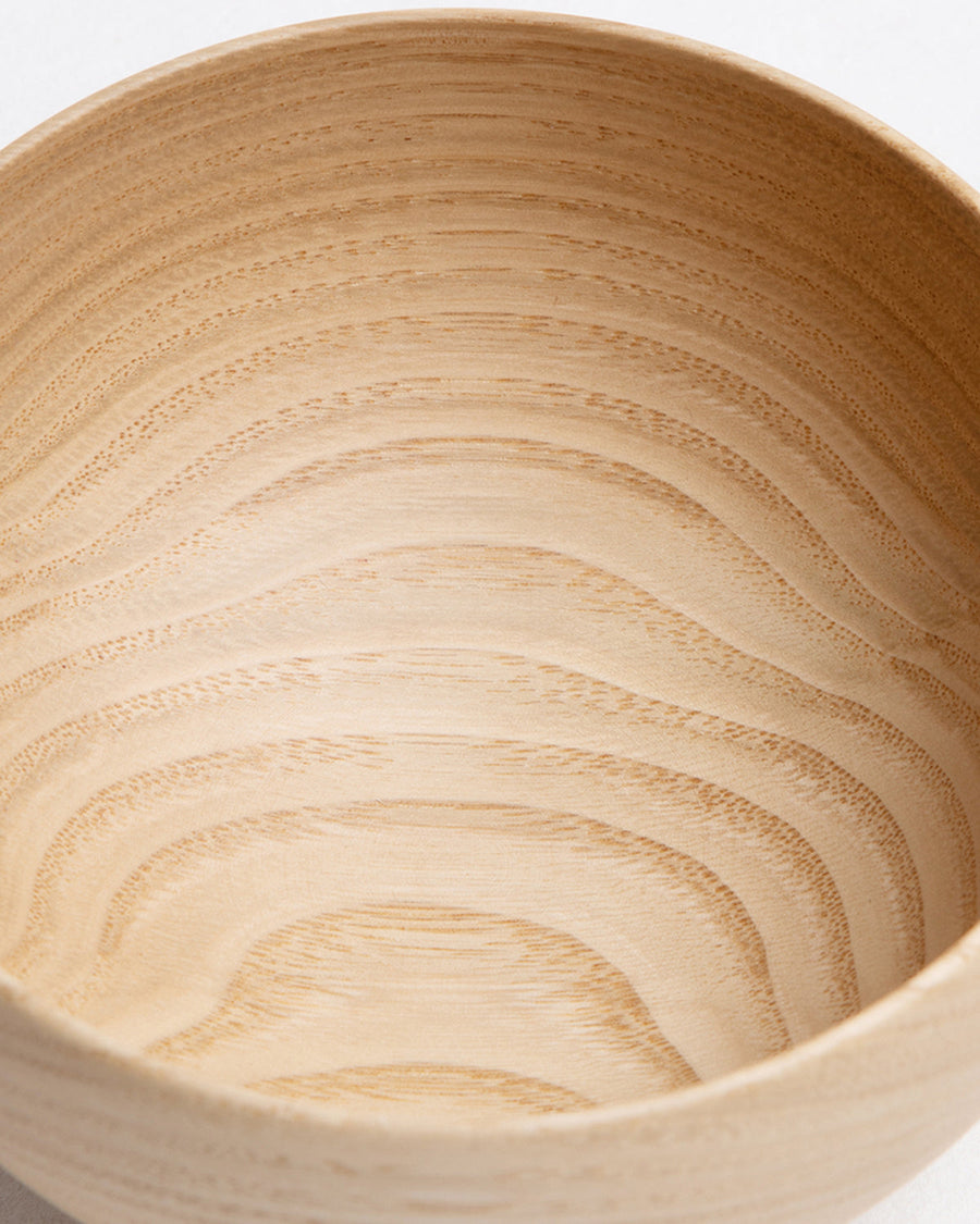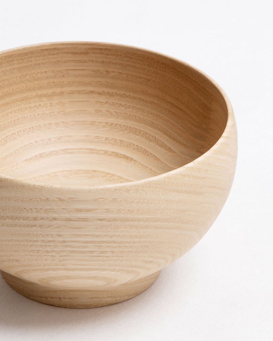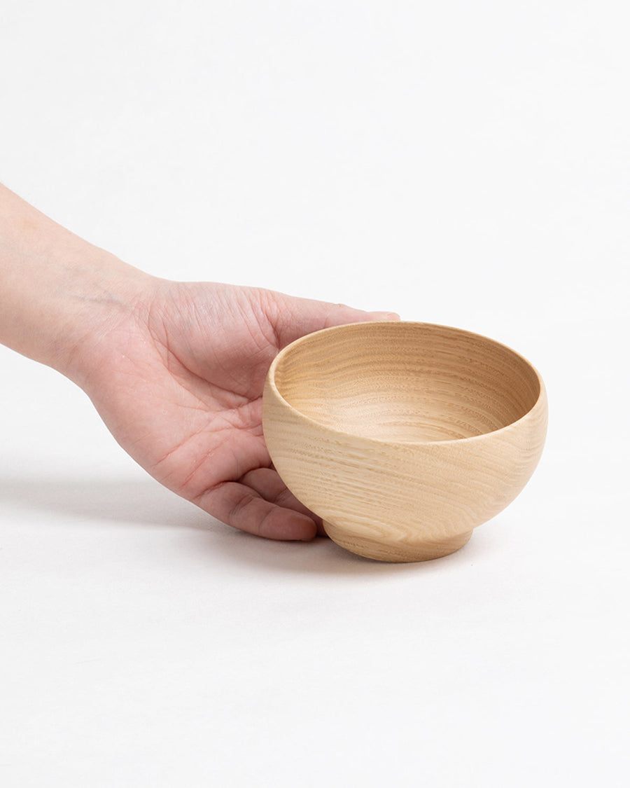 手に馴染みやすい丸みを帯びたフォルムの汁椀です。胡桃(くるみ)、栗、楢(なら)の木をそれぞれ丁寧に切削加工し、食卓に馴染むマット仕上げのウレタン塗装で作られています。