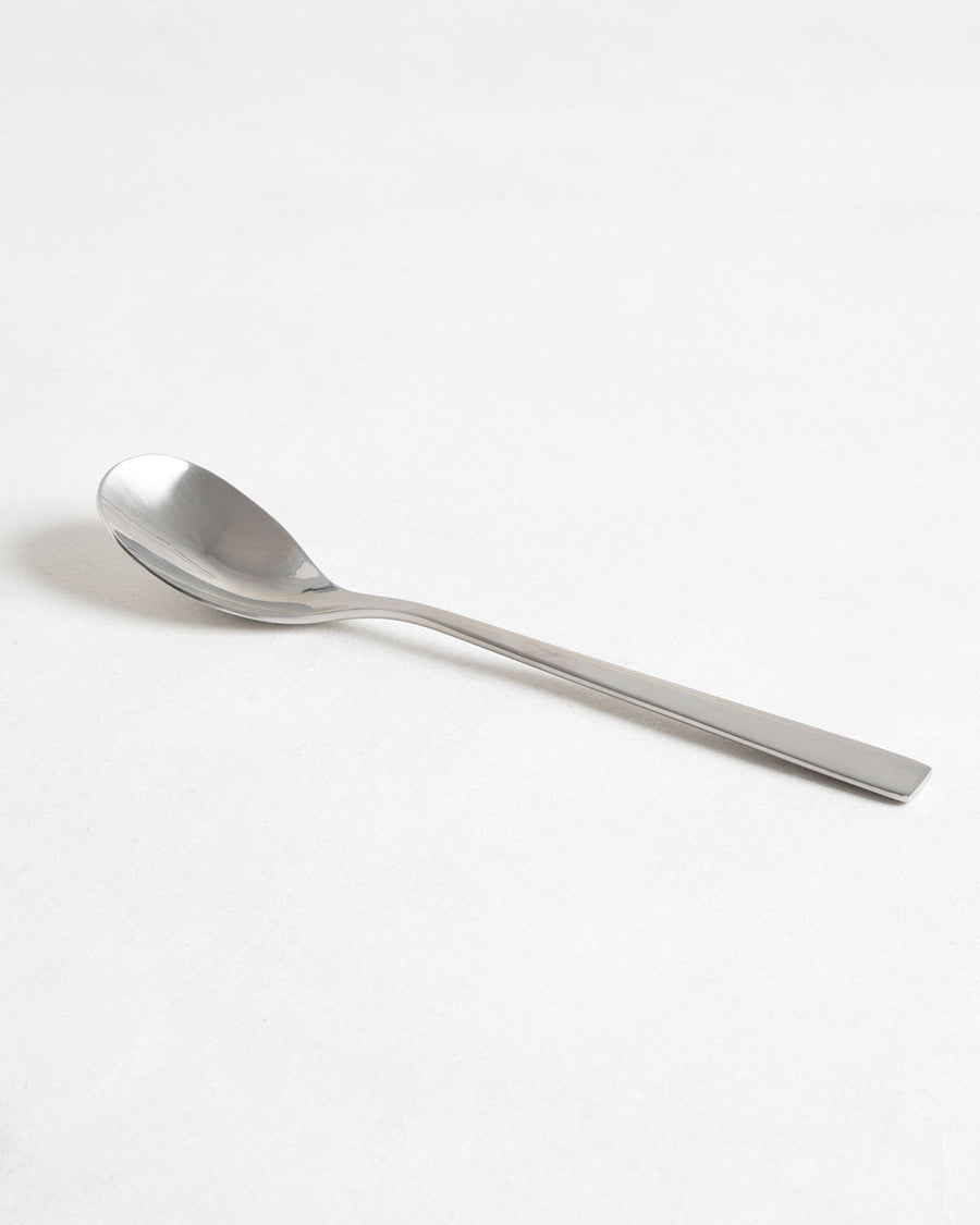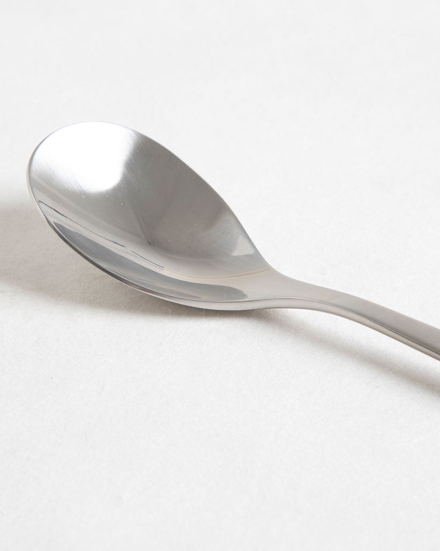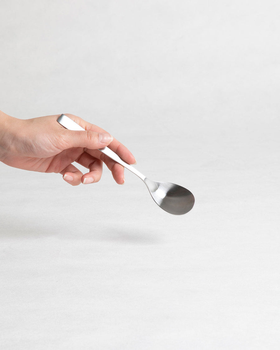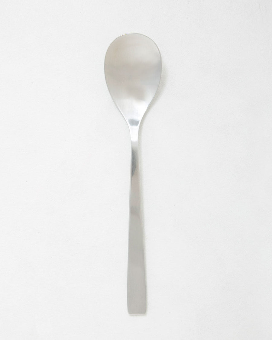 日本の食卓に溶け込むようデザインされた、マットなステンレス素材のディナースプーンです。