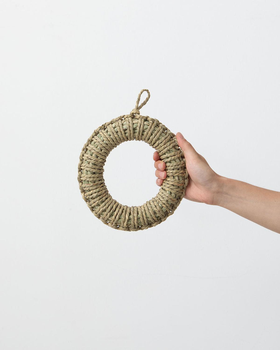 い草を使用して伝統的な技法で編み上げた「鍋敷き 中」です。