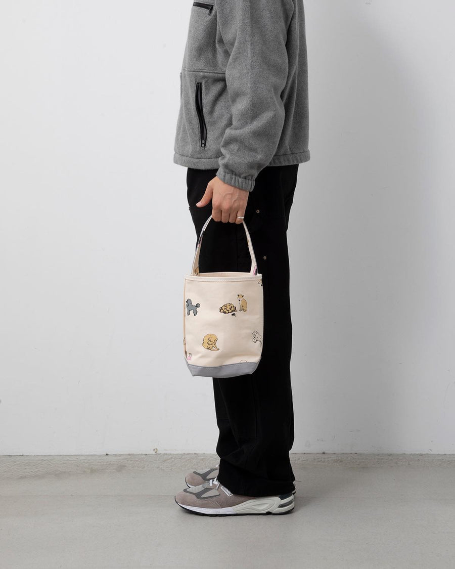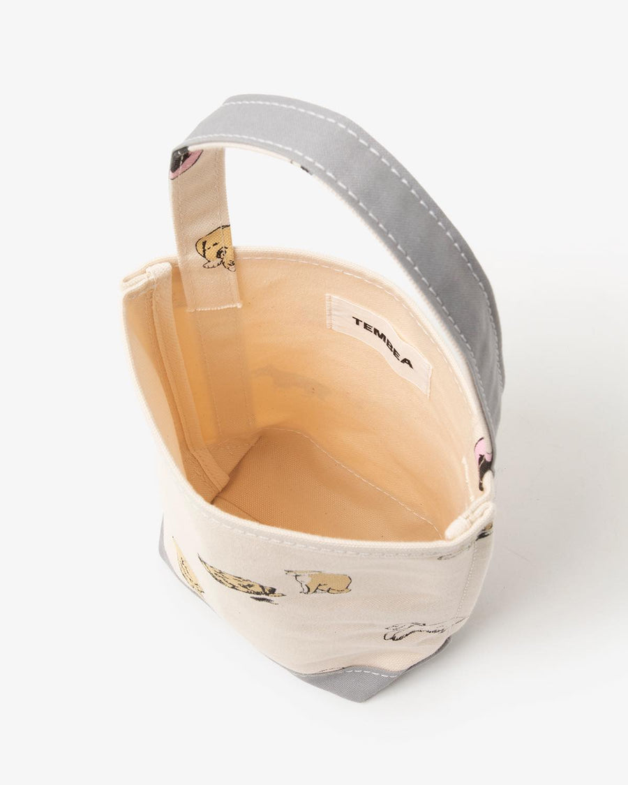 動物モチーフのプリント生地を使用し、ハンドルカラーは新たにセレクト。復刻とはいえ、同じものは二つとない特別な一品です。