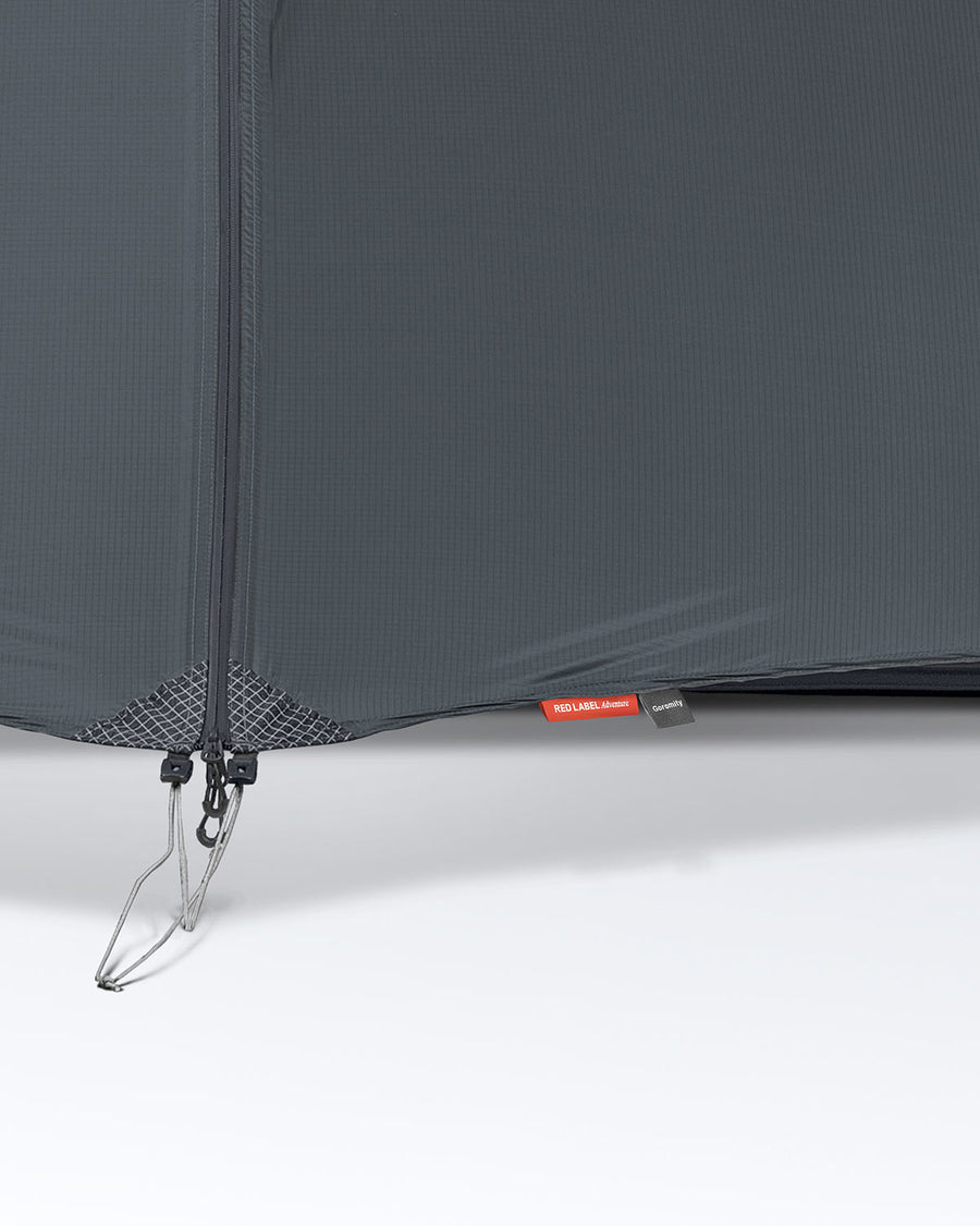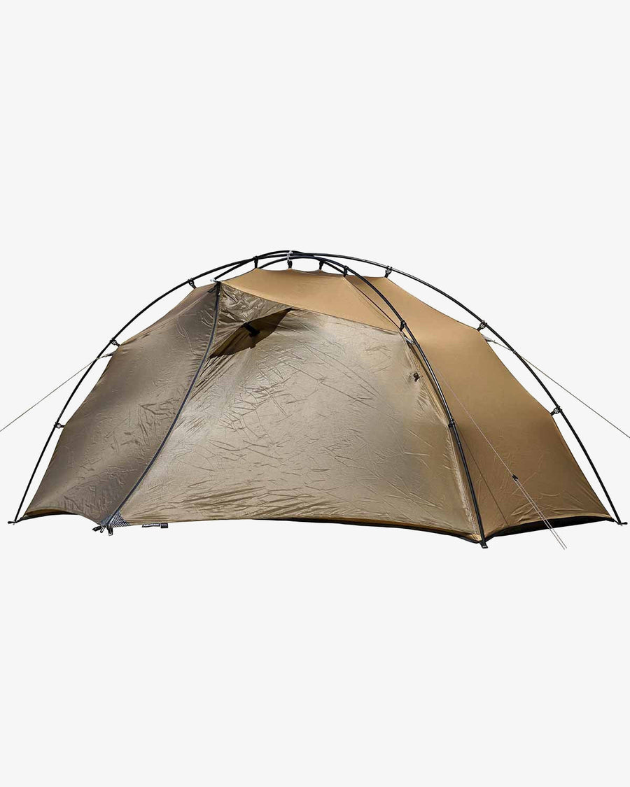 フライシートには高強度のシルナイロン、ドーム本体には通気性に優れる20Dナイロンを採用。両サイドのメッシュは風の侵入を抑える20Dモノフィラを配し、オールシーズンでお使いいただけるバランスの良い設計です。