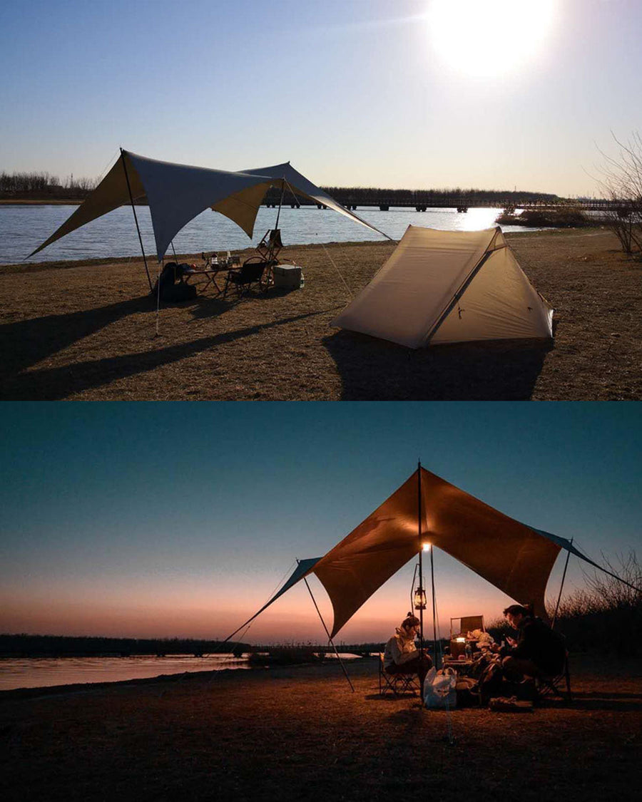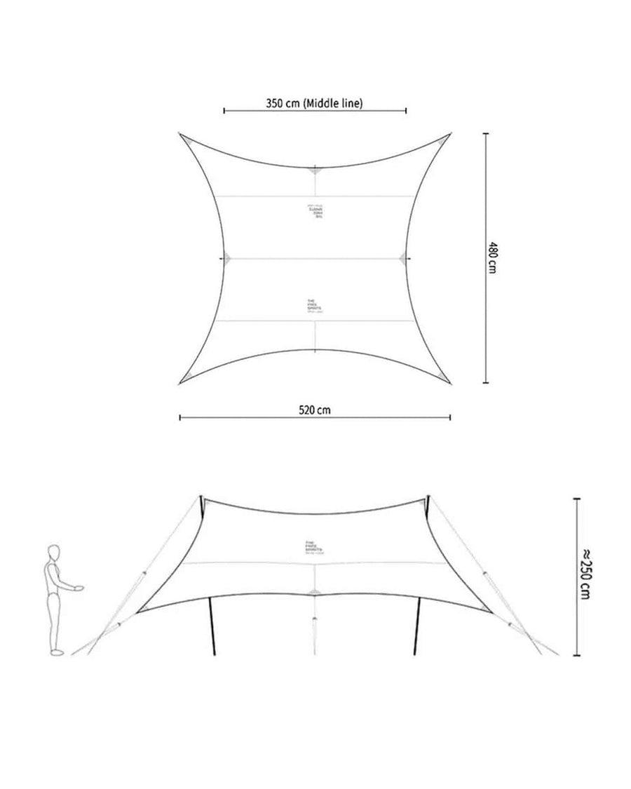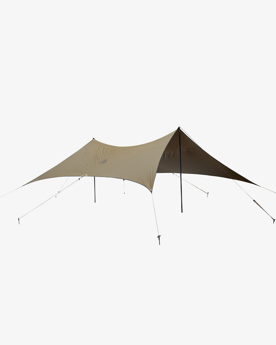 最大10人利用可能なグループシェルターとして設計された大型タープ「DIAMOND TARP」です。