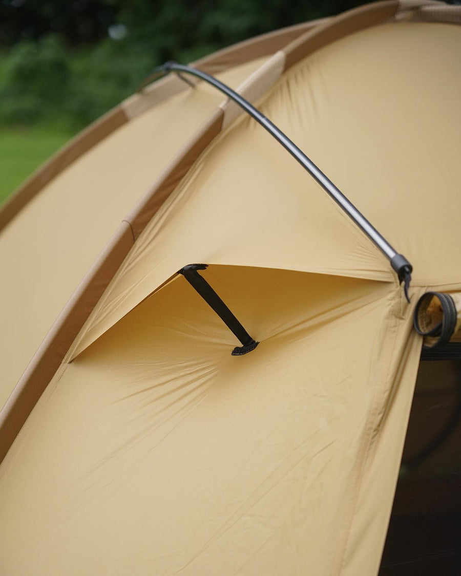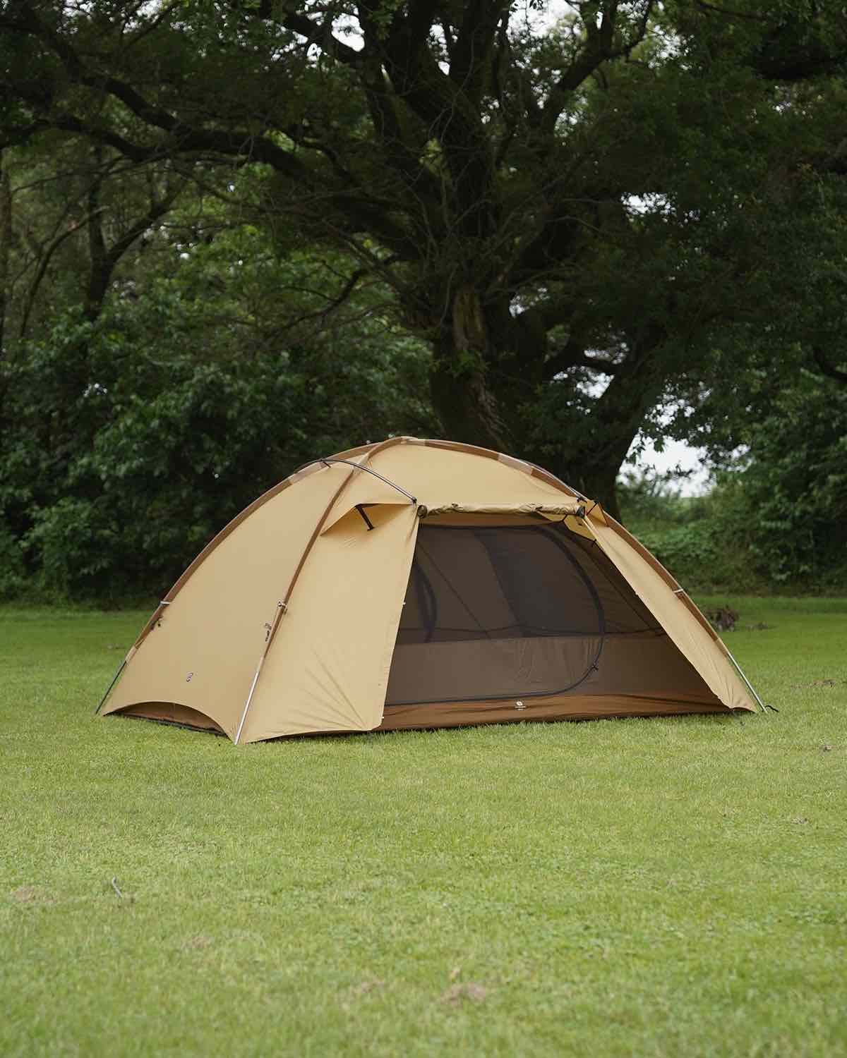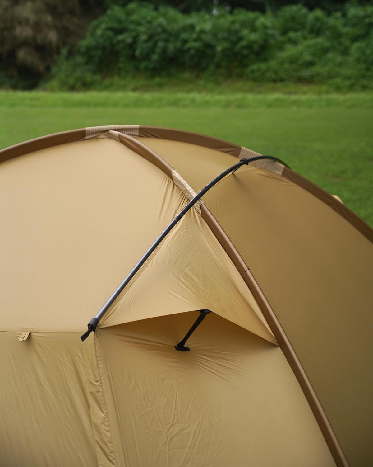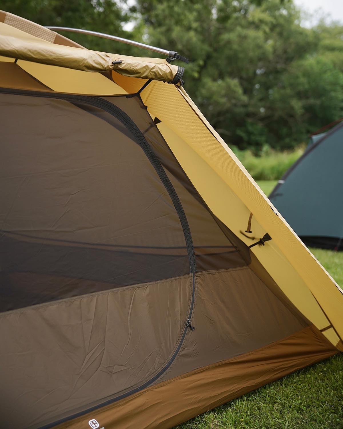 テントの居住性を高める2本のリッジポールを配したデザインで、広々とした空間設計により、オートキャンプから4人用の登山テントまで幅広いシーンで活躍します。