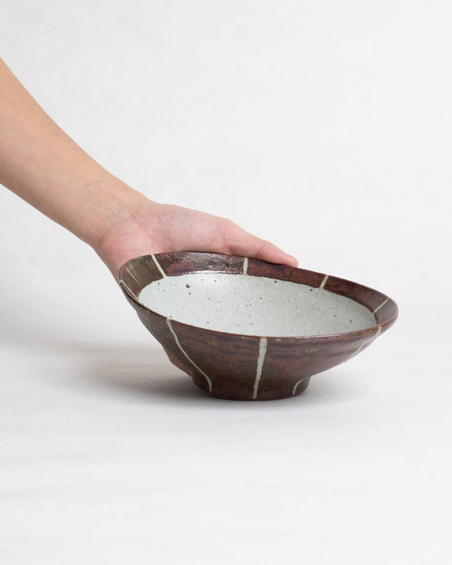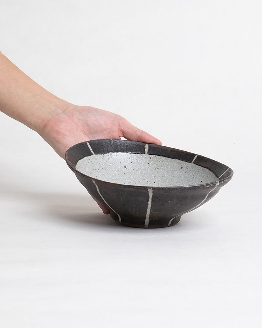 豊かな自然に囲まれた宮崎県都農町に工房を構える作家〈瀧本徳郎〉が作陶した楕円形のボウルです。