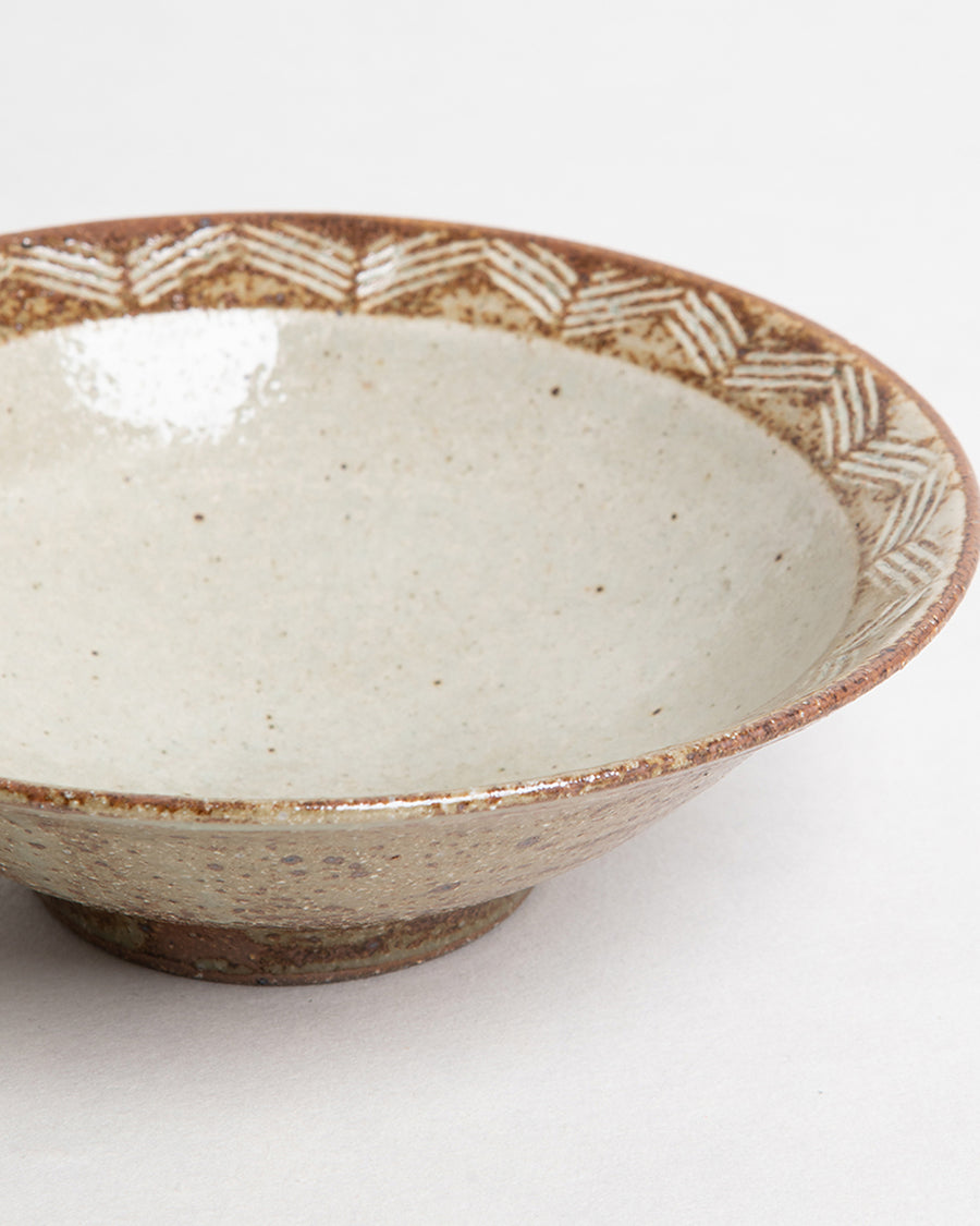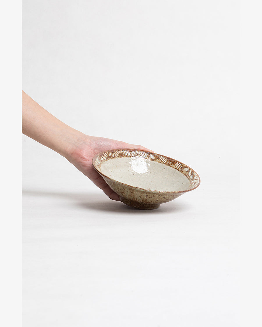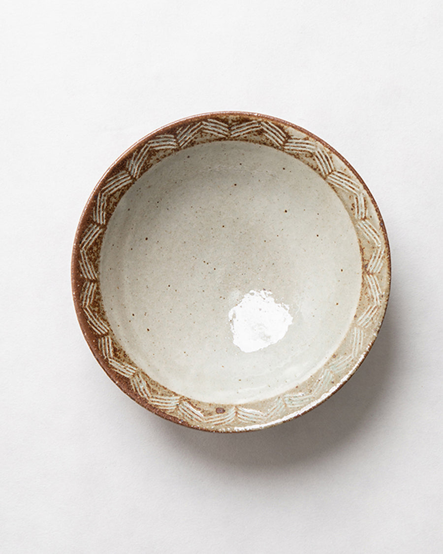 白化粧を施した上から釉薬をかける粉引という技法で、心地よい渋みのある色に仕上げています。