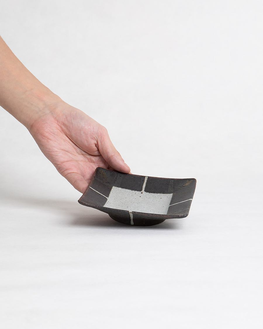 瀧本徳郎 角 小皿 鉄釉