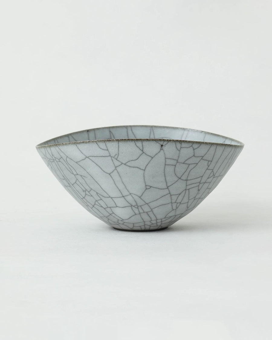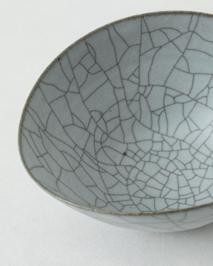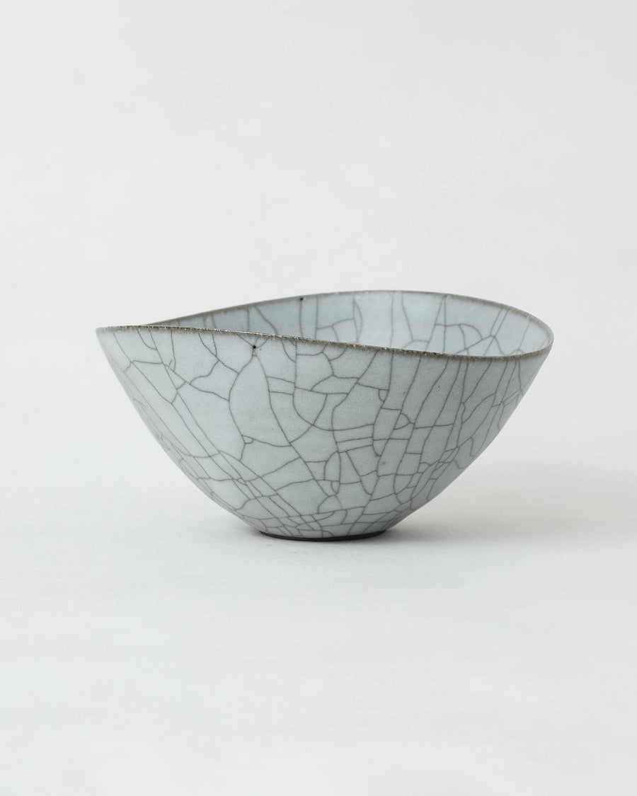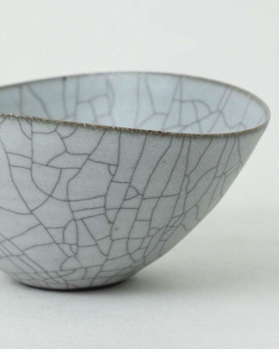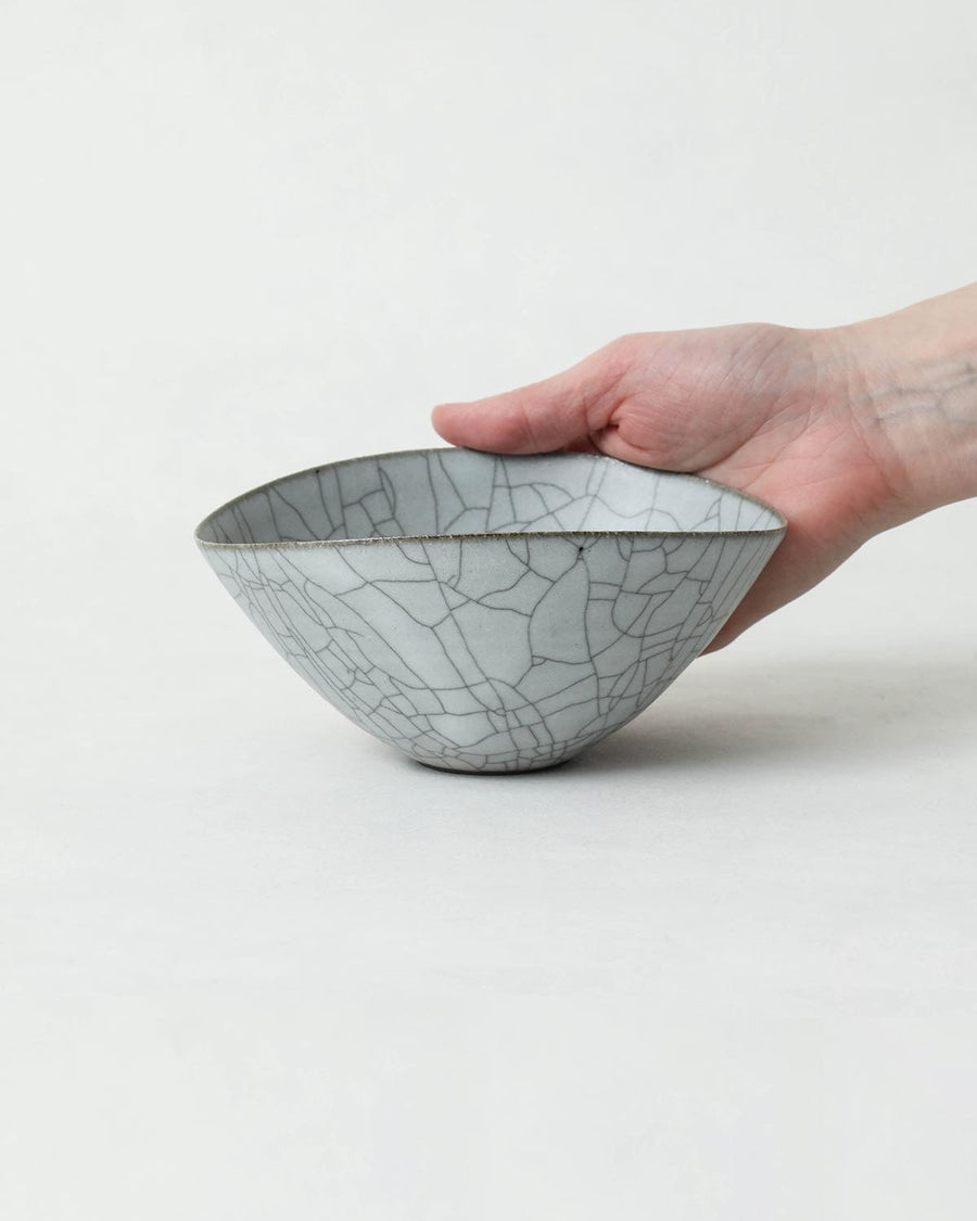 京都・亀岡にて、2008年より作陶をスタートした陶芸家の〈高田志保〉。表面のヒビ模様が印象的な炭貫入を得意とし、炭入りの器を中心に製作を行っています。日常生活の中で、思わず手に取りたくなるような造形美と、透き通ったホワイトグレーの釉薬が特徴です。